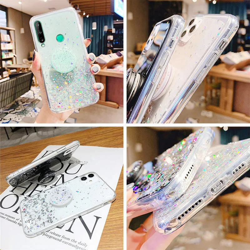 Блестящий силиконовый чехол для Huawei Honor 8A 8C 8X Max 9A 9S 9C 9X, чехол для Honor 7A 7C Pro 7X Play 3E 4T Pro X10 Magic 2, держатель-подставка