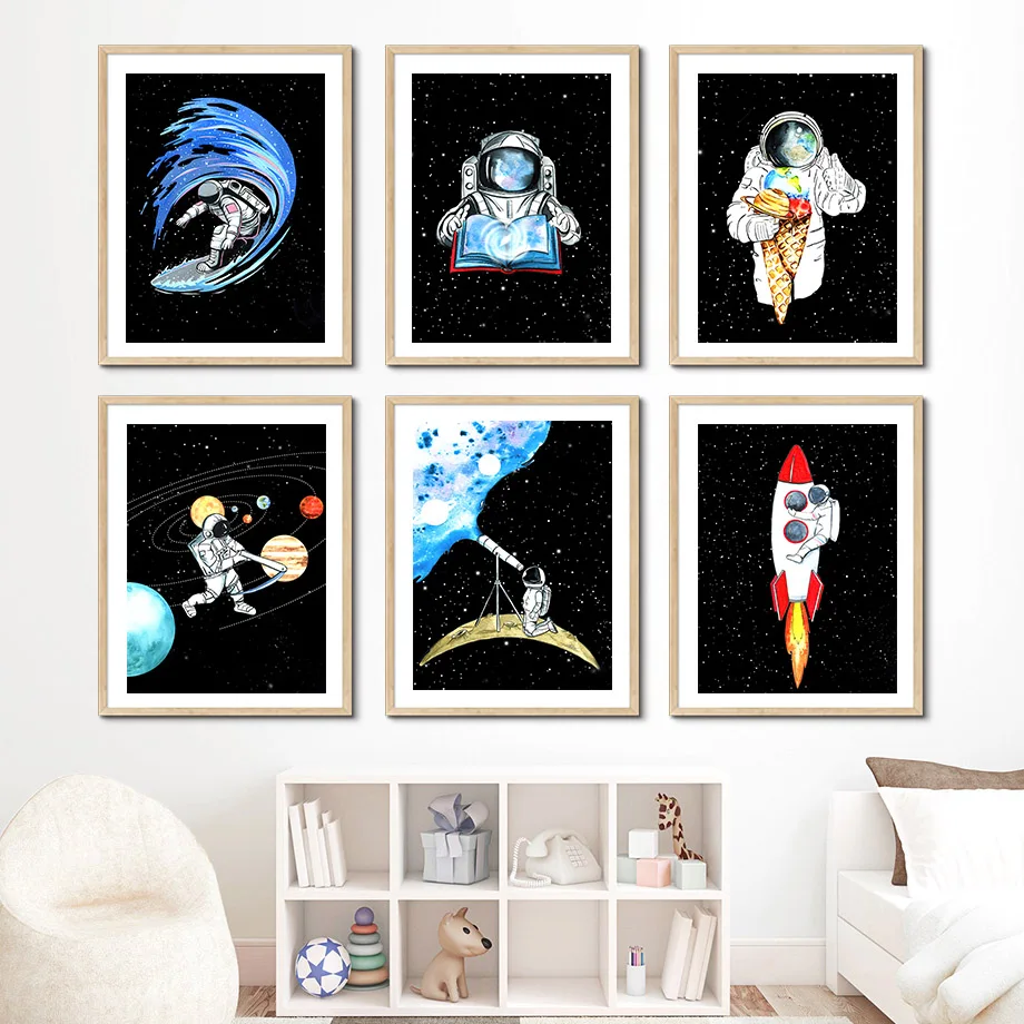 Плакаты и принты космоса, ракеты, планеты, звезды, луна, мультфильм...