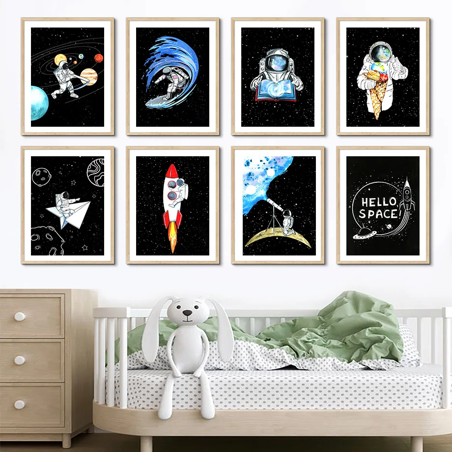 Настенная живопись в скандинавском стиле с космическими космонавты ...