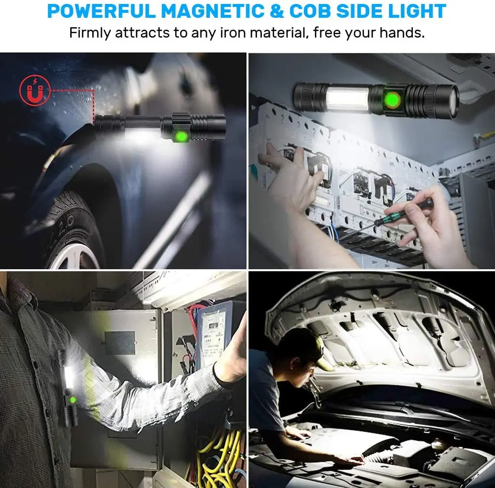 Магнитный флэш-светильник, перезаряжаемый супер яркий светодиодный фонарь с боковой рабочей светильник, масштабируемый, IP65 Водонепроницаемый-аварийный, кемпинг, рыбалка, повседневный флэш-светильник с зажимом, домашний источник питания