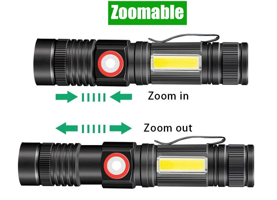 Супер яркий светодиодный фонарик Pocketman: Характеристики 8000лм Макс, который может быть светильник до 200 м, и регулируемый дизайн фокусировки поможет ему быть полностью масштабируемым от большой площади прожектор светильник сфокусированный Точечный светильник. Боковой рабочий светильник может использоваться как фонарь для кемпинга, рабочий светильник, настольная лампа, светильник в режиме ожидания для аварийной ситуации дома.