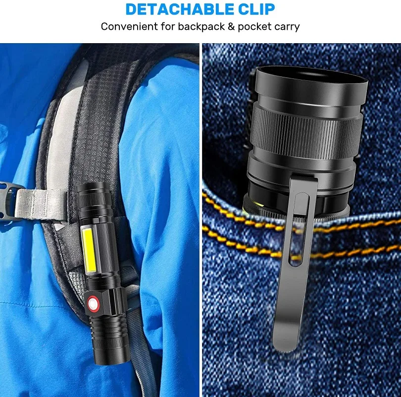 Прочный фонарик с зажимом для ремня:✅Корпус из алюминиевого сплава делает его достаточно надежным и долговечным для предотвращения стихийных бедствий и других чрезвычайных ситуаций в течение многих лет.✅Водонепроницаемость IP65 позволяет выдерживать сильные дожди, дождевые штормы и ураганы.✅Зажим легко крепится к поясу, рюкзаку для ежедневной переноски и быстрого доступа.