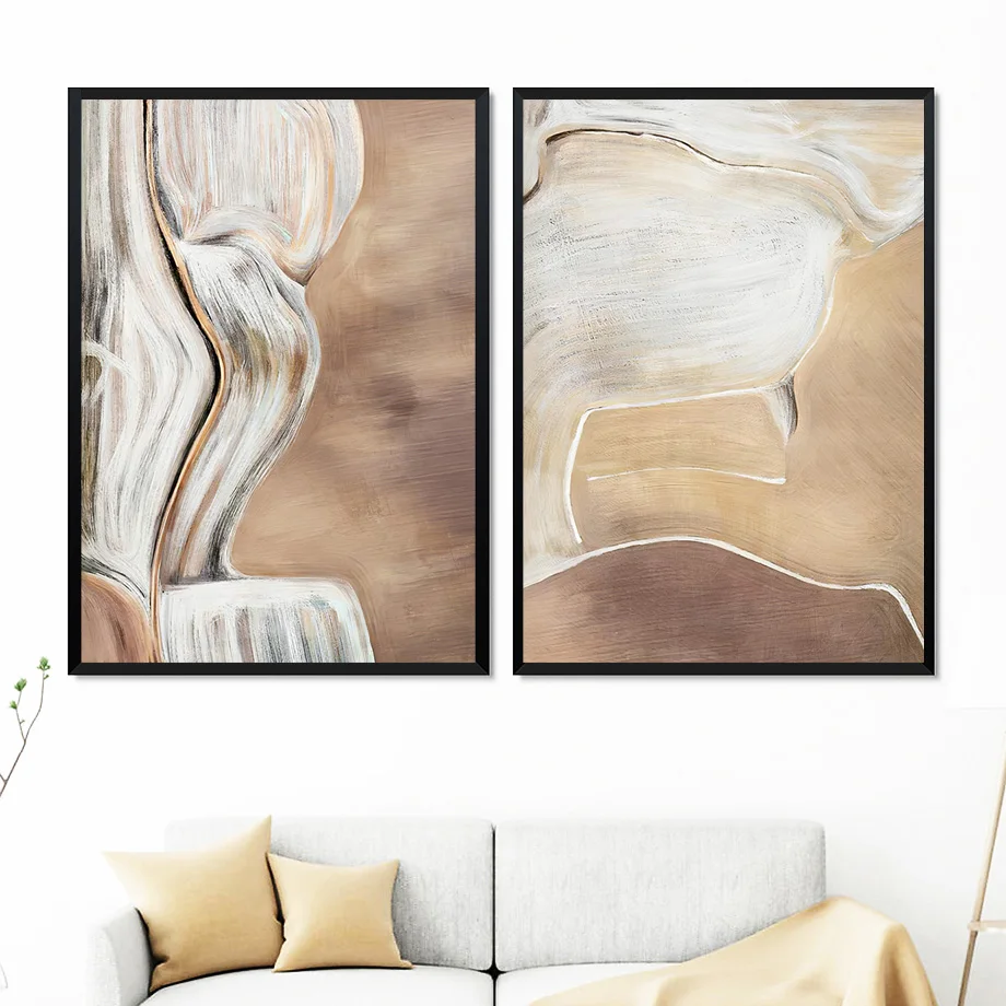 Абстрактные линии девушка Цитата бежевый пейзаж настенная Картина н...