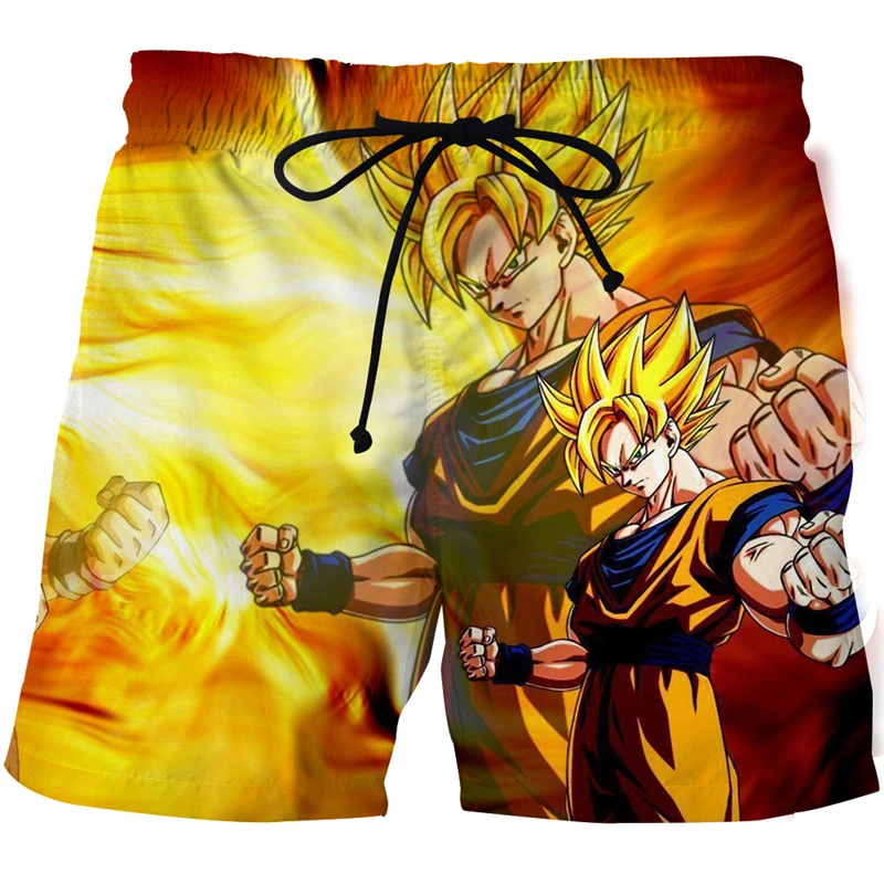 Шорты мужские с 3D-принтом огненного мультфильма Гоку, свободные удобные спортивные штаны для бега, модные пляжные плавки в стиле хип-хоп, летние
