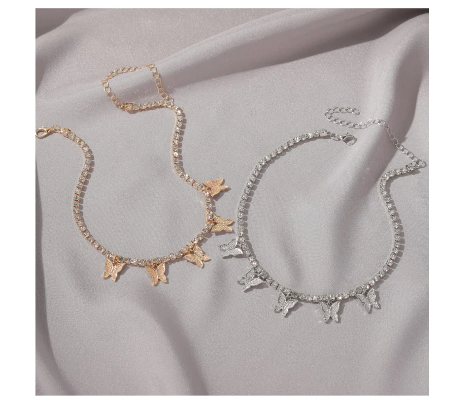 В стиле панк льдом бабочка колье для женщин серебряная цепочка колье-чокер с блестками в стиле хип-хоп вечерние кулон ювелирные изделия подарок для женщины
