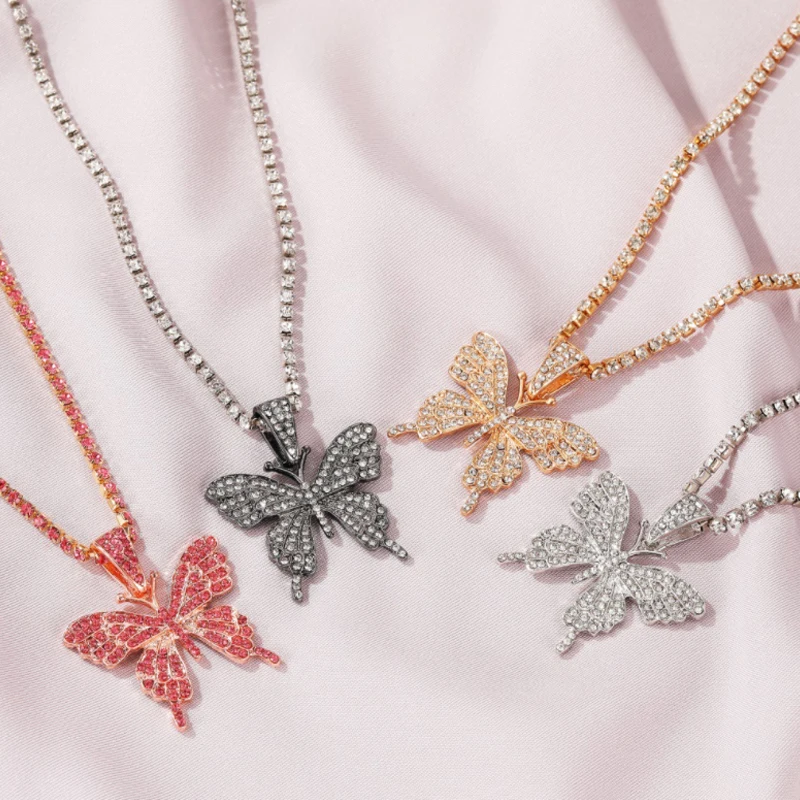 Кубинская Бабочка ожерелье стразы бабочка кулон ожерелье Хип-хоп ак...