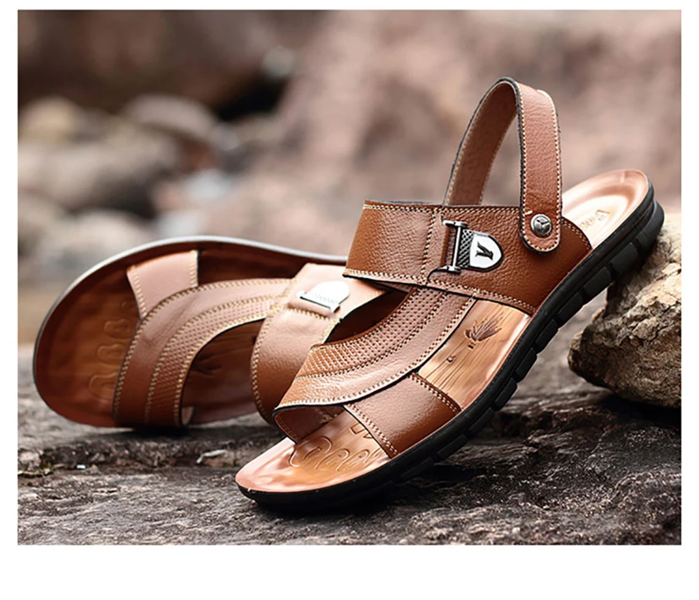 Сандалии мужские кожаные, Классические летние туфли, дышащие, для х...
