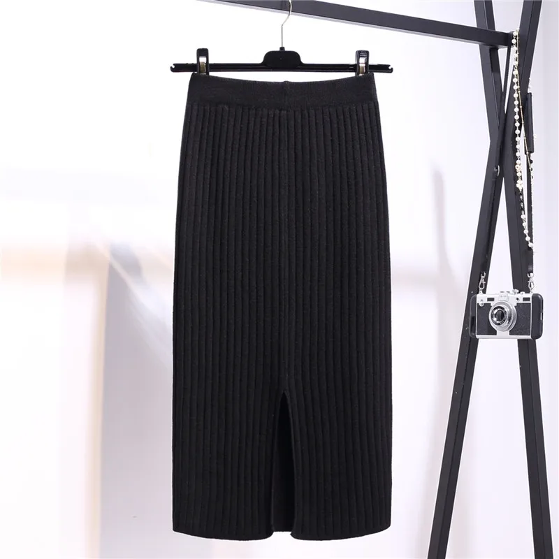 Для женщин осенняя вязанная длинная юбка, сексуальная юбка с завыше...