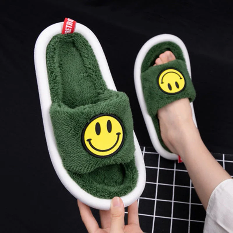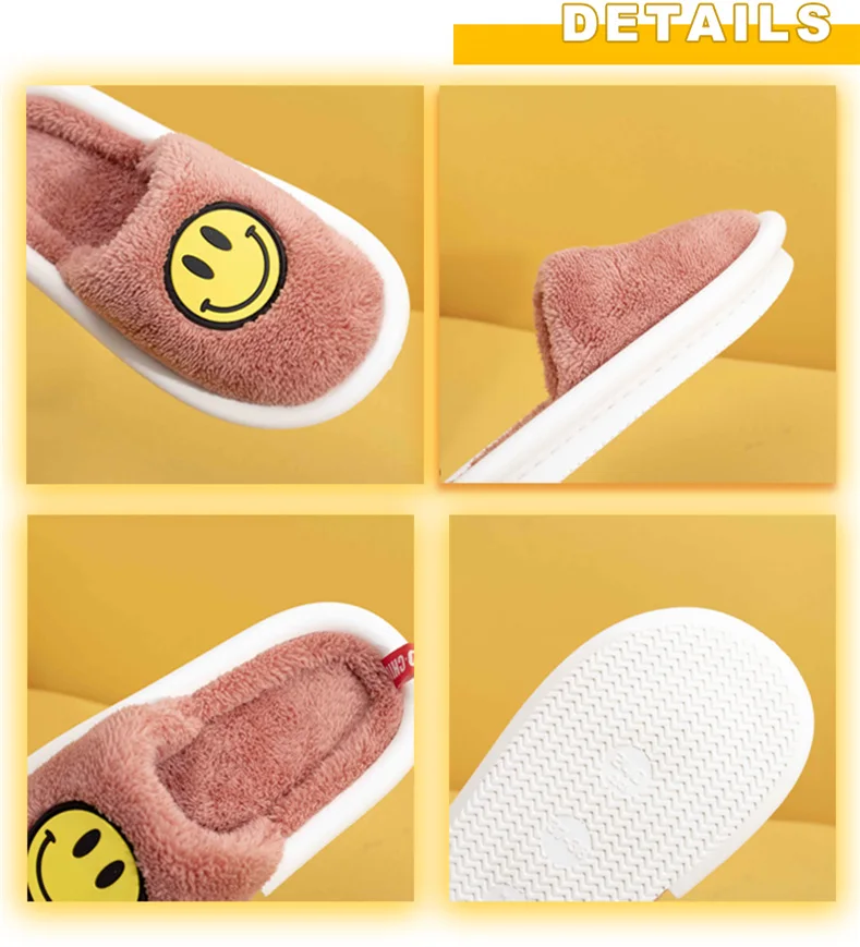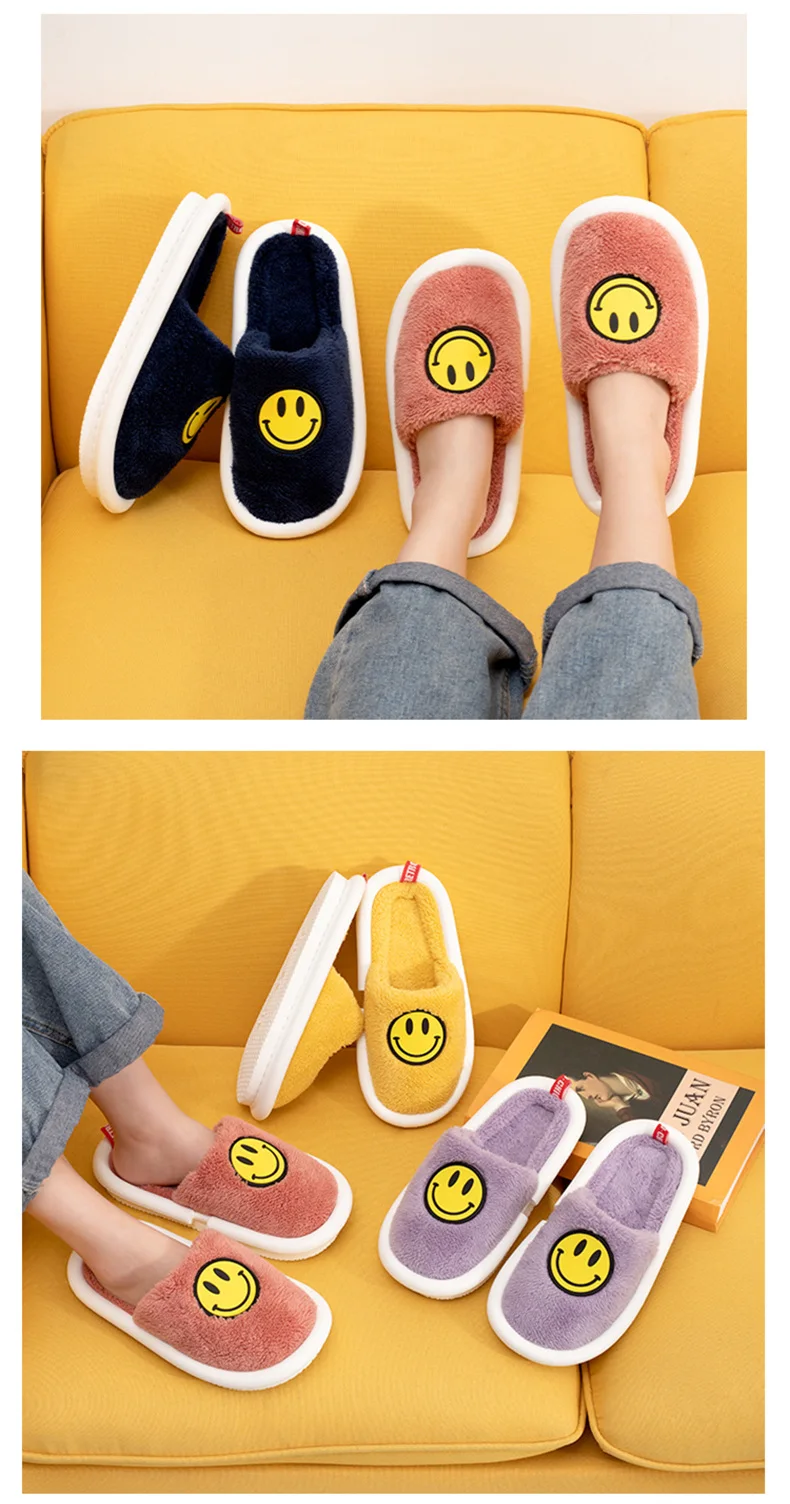 Зимние мужские тапочки WEH со смайликом, пушистые домашние тапочки с эффектом пуш для мужчин, Симпатичные сланцы для спальни с мультяшным рисунком, женские домашние тапочки для мужчин