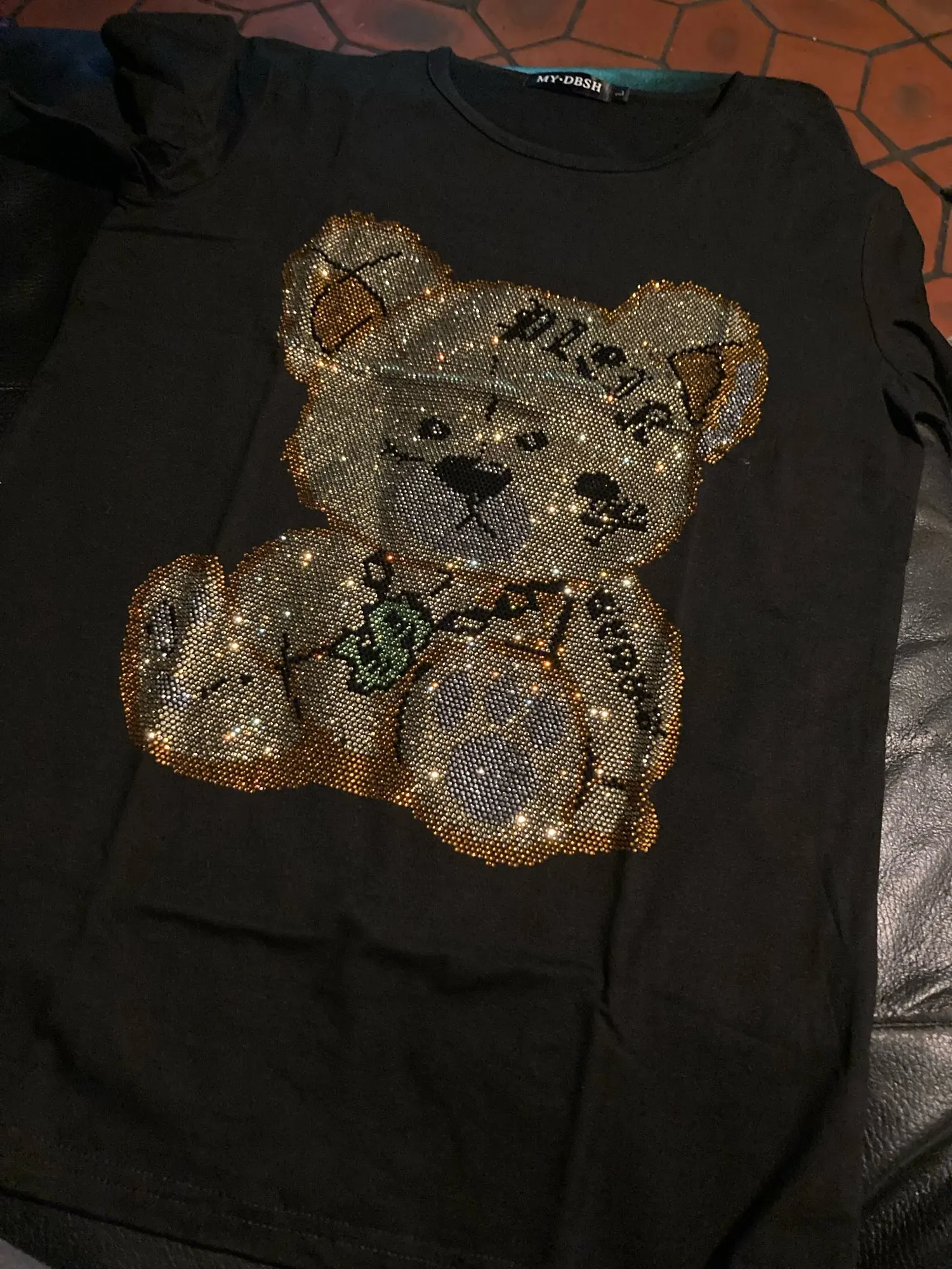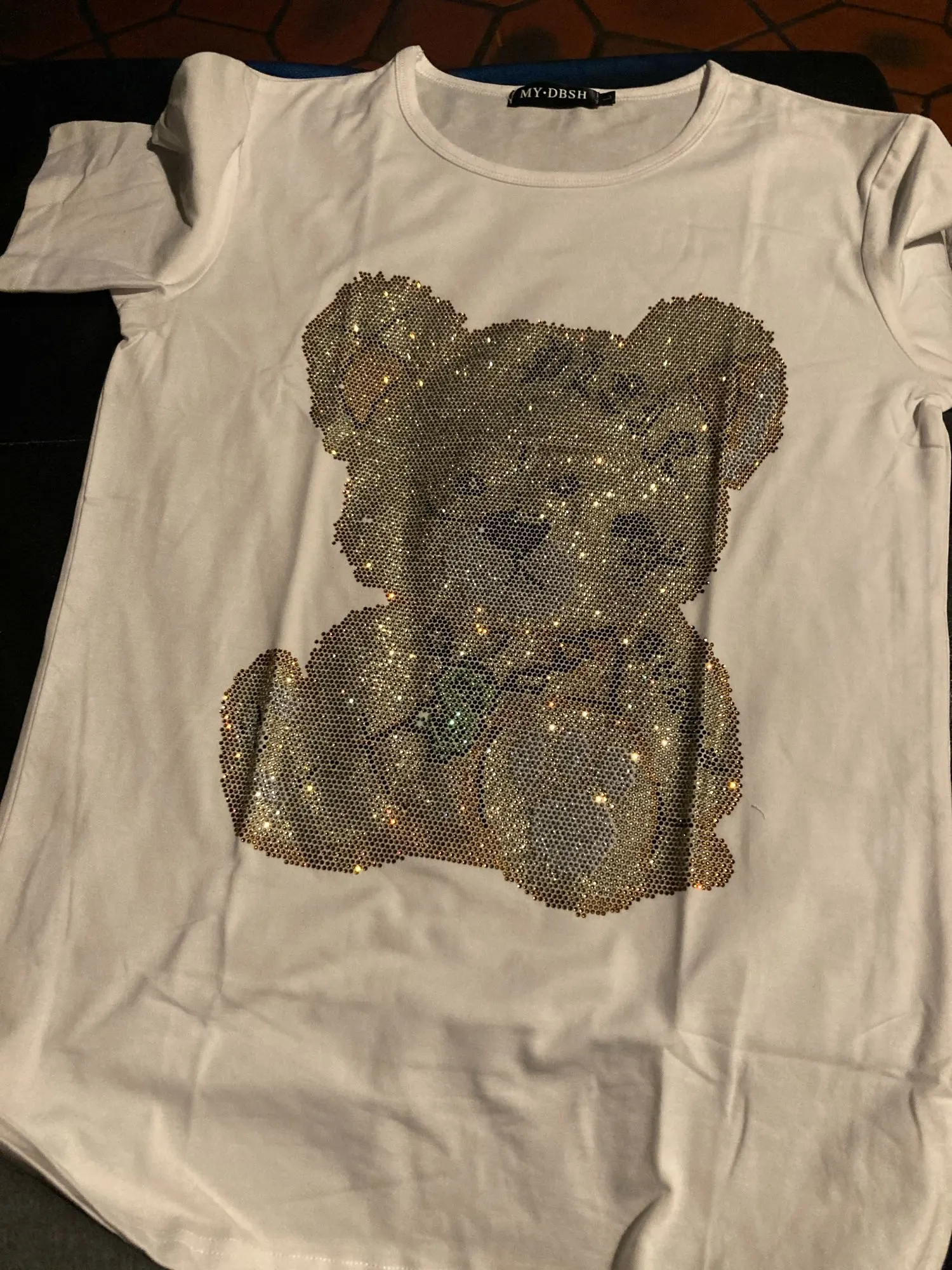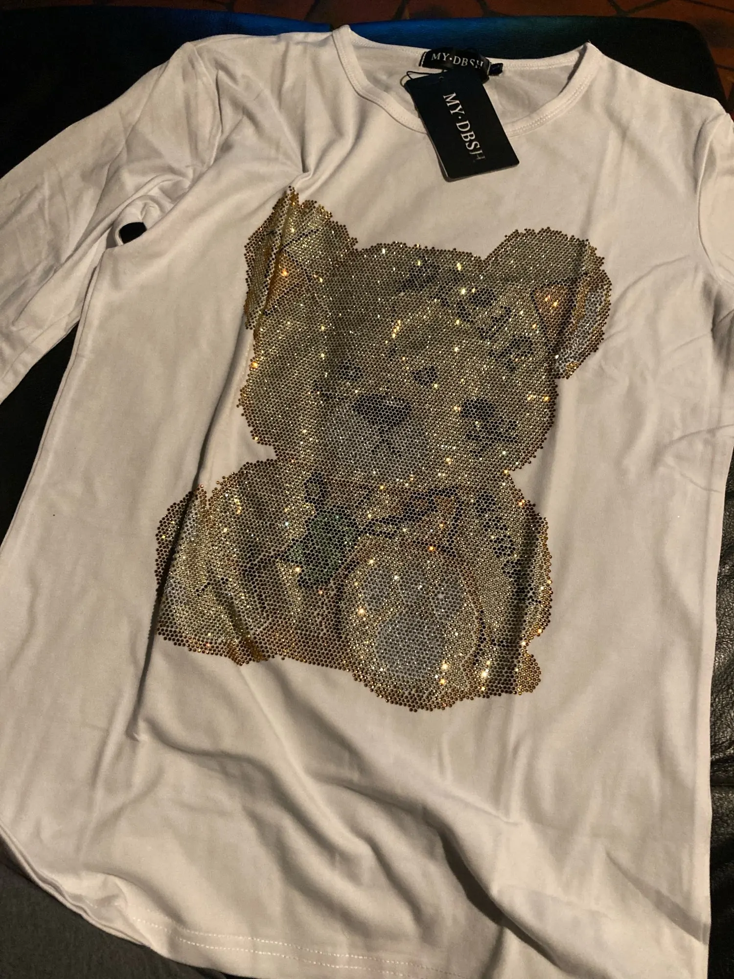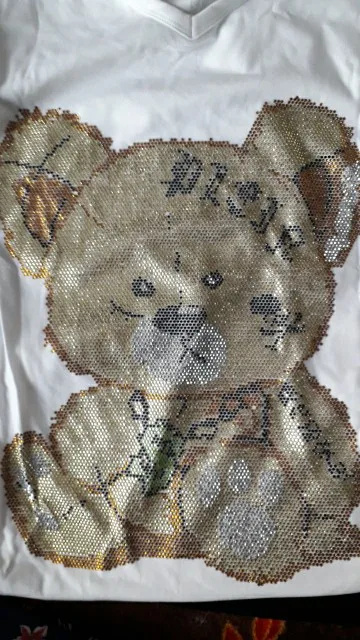 Женские футболки Harajuku для девочек размера плюс, топы с надписями, стразы, круглый вырез, длинные рукава, свободная летняя футболка, белые футболки с медведем, S-5XL