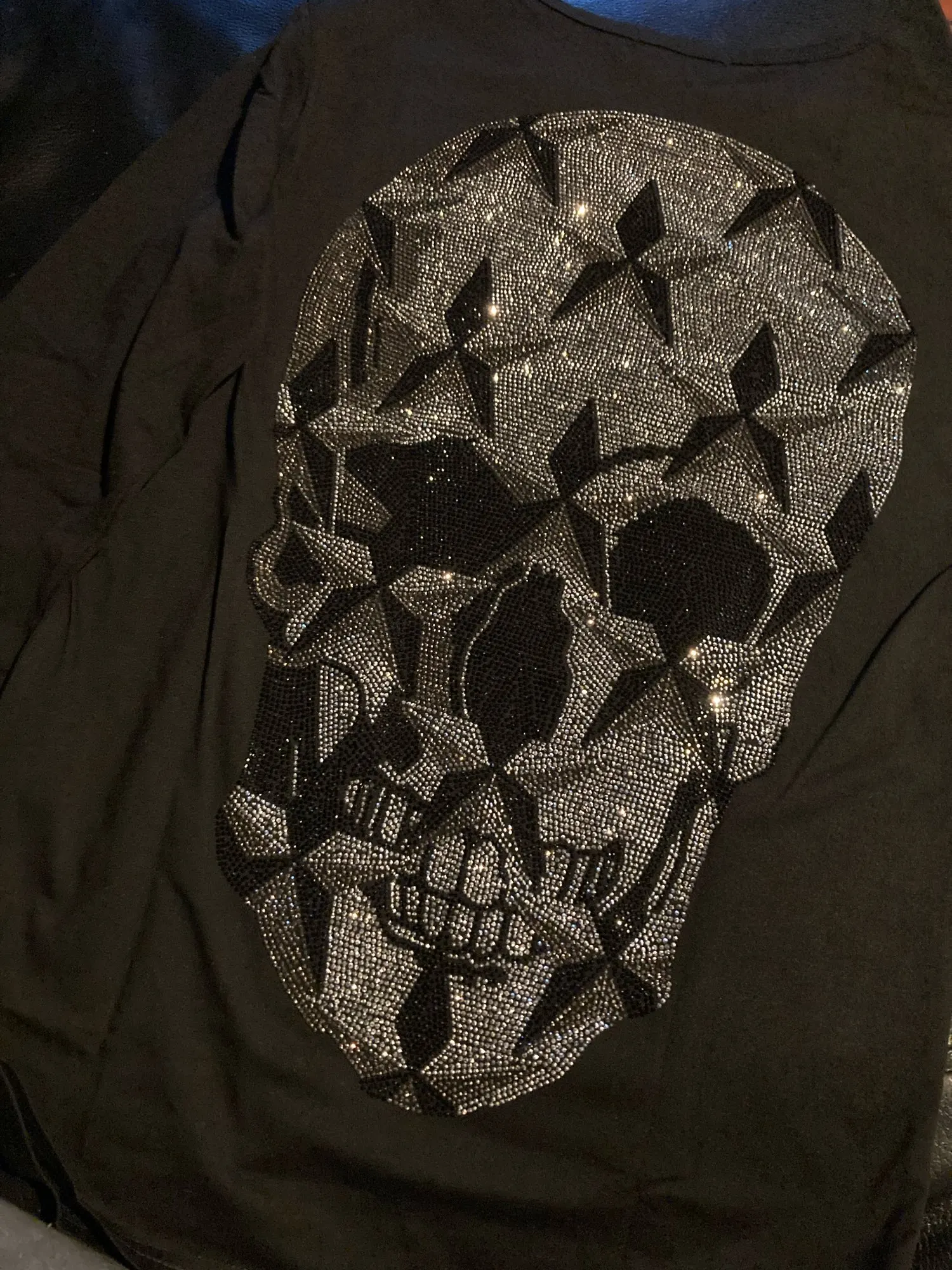 Футболка женская, с надписью Стразы, круглым вырезом и длинным рукавом, размера плюс