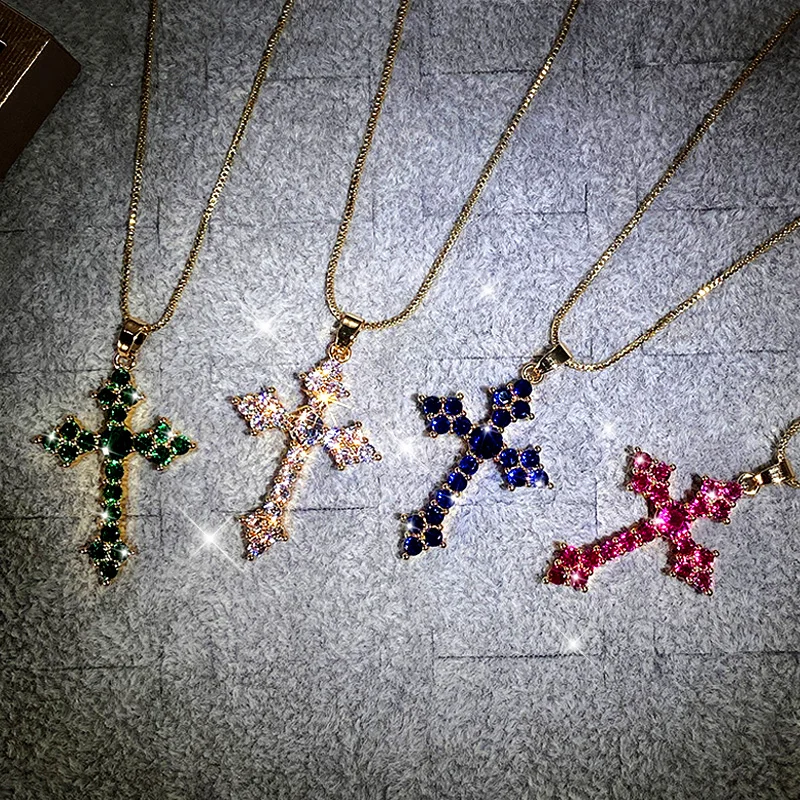 Ожерелье женское, с крестом, белого, розового, красного, зеленого, синего цветов