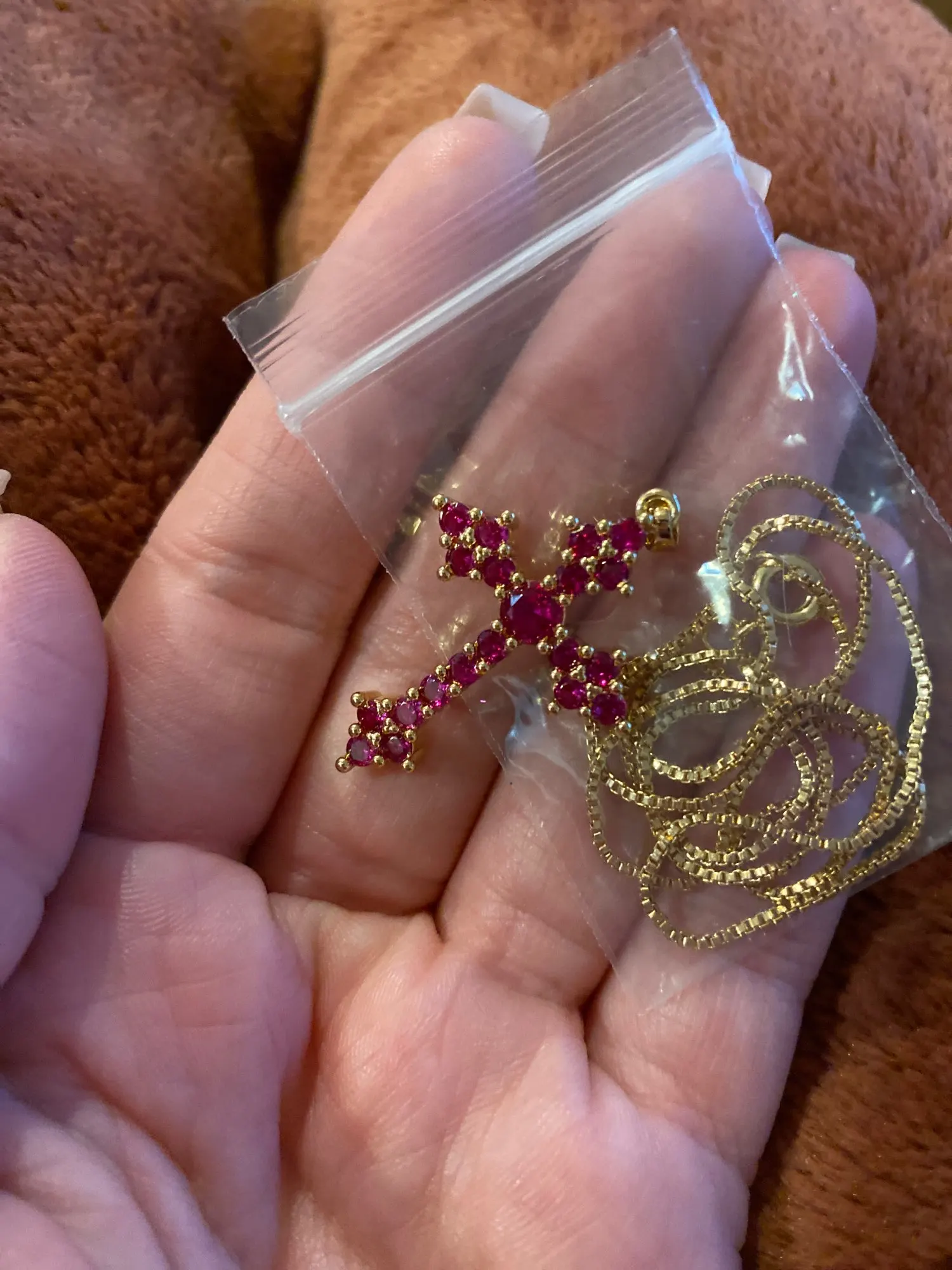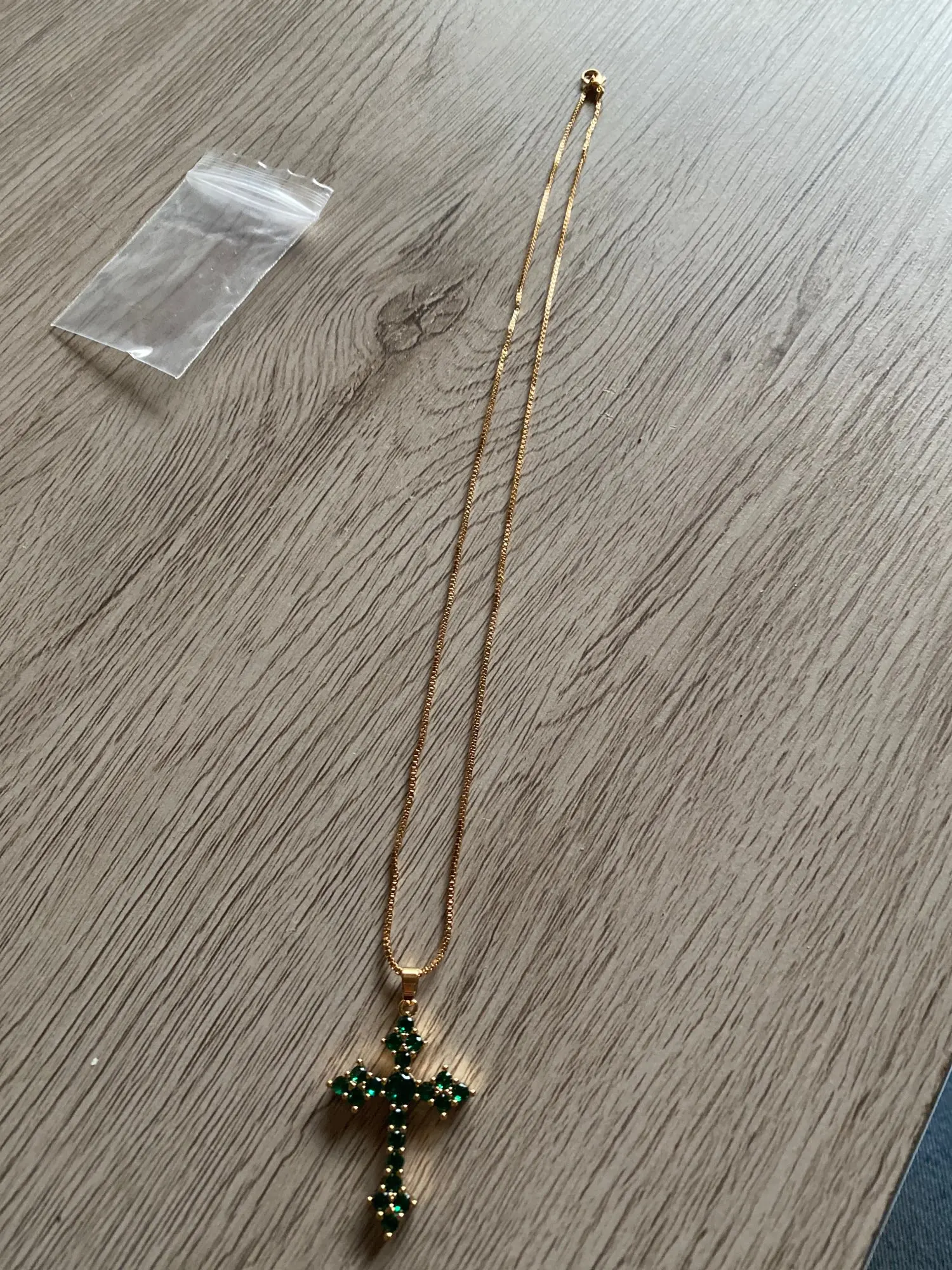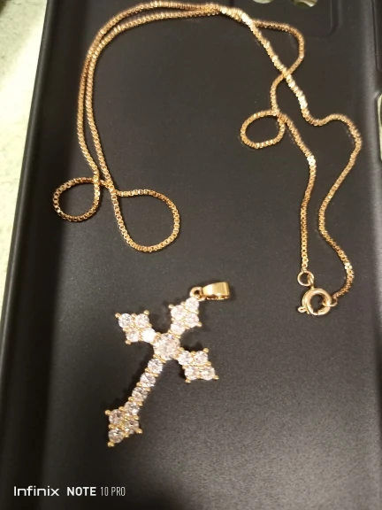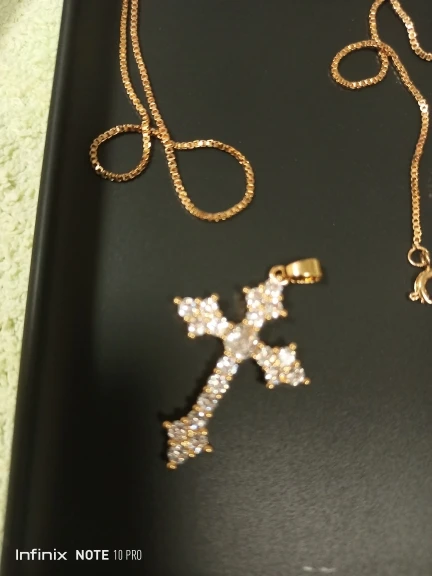 Крест выглядит потрясающе, отличное качество, и я не думаю, что он будет ржаветь, как другие дешевые чехлы, сама цепочка довольно тонкая и не из материала, который я ожидала, но она определенно прослужит дольше, чем самая дешевая, а крест съемный, так что вы можете переключить ее, если хотите. Очень рекомендую это ожерелье