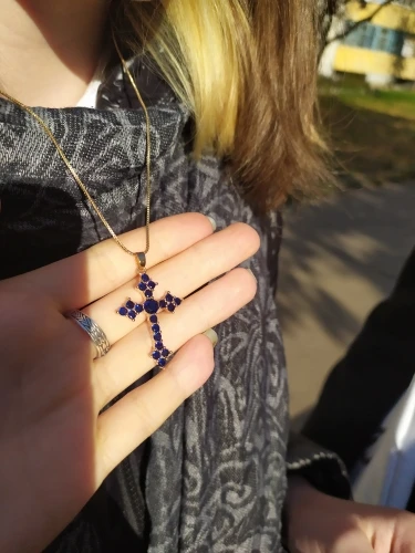 Крест пришел быстро. Вся конструкция сохранена,без дефектов. Без неприятного запаха. И очень напоминает золото,можно с ним комбинировать.