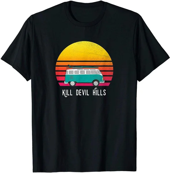Винтажная Футболка Kill Devil Hills, закат, серфинг, хиппи, фургон, принт, черный хлопок...