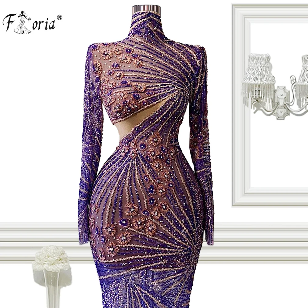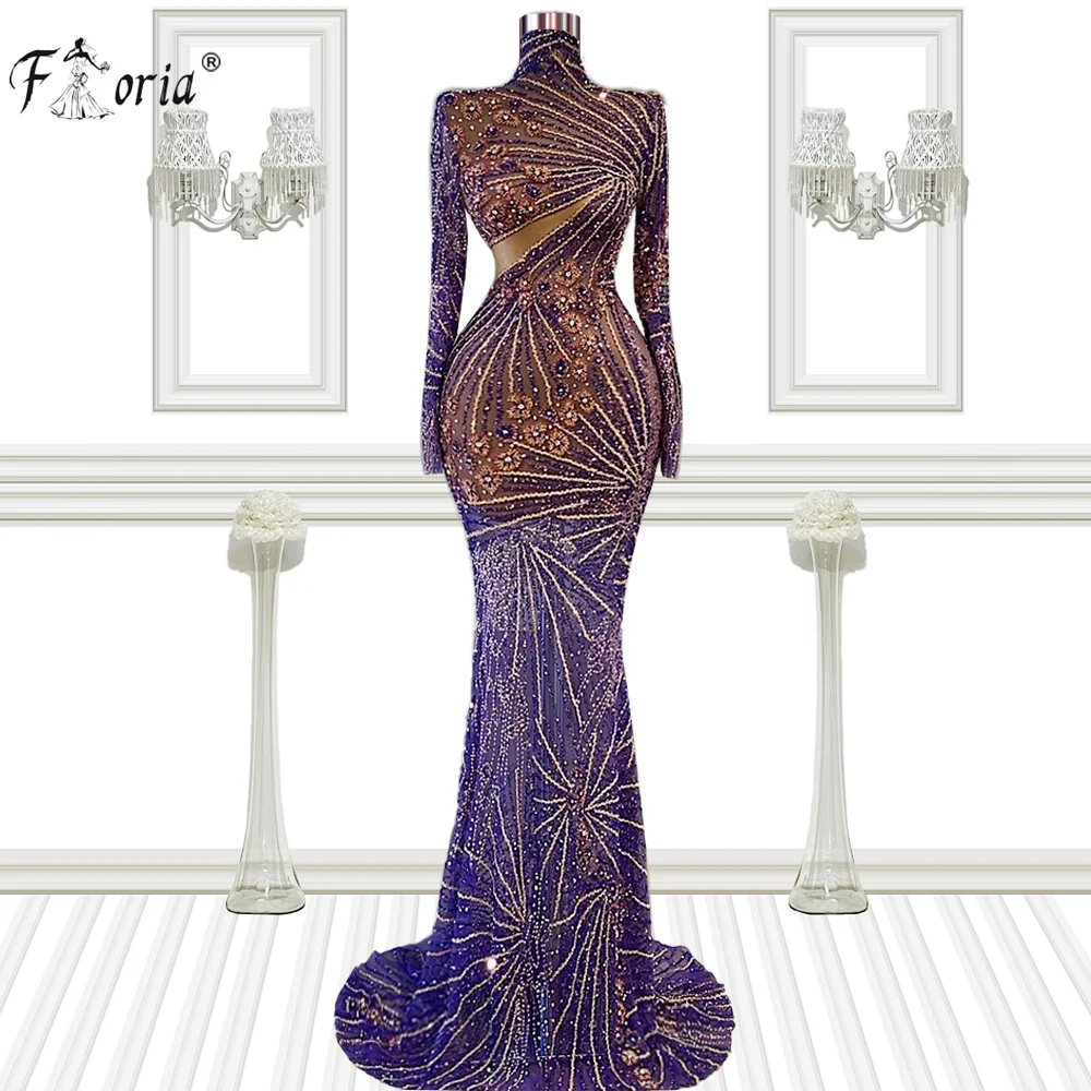Роскошные фиолетовые длинные вечерние платья с высоким воротом 2021 от кутюр, украшенные бисером и кристаллами, женская вечерняя одежда, вечерние платья, халаты