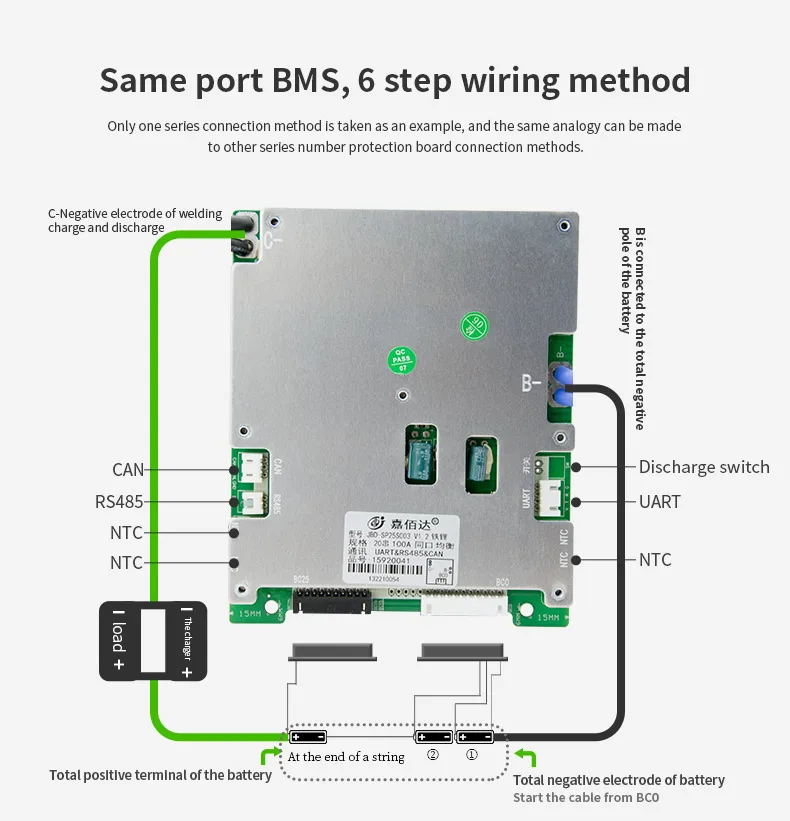 JBD-SP25S003-это умная bms, разработанная компанией Dongguan Jiabaida Electronic Technology Co., Ltd. для 13-25S аккумуляторных батарей, электрических велосипедов, электрических мотоциклов и т. д.; он может быть применен к литиевым батареям с различными химическими свойствами, такими как литий-ионный, литий-полимерный, литий-Железный фосфат и т. д.