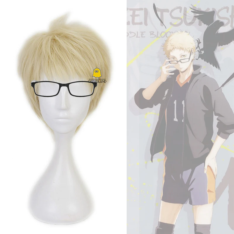 Haikyuu! Парик Tsukishima Kei светильник лый светлый для косплея ко...