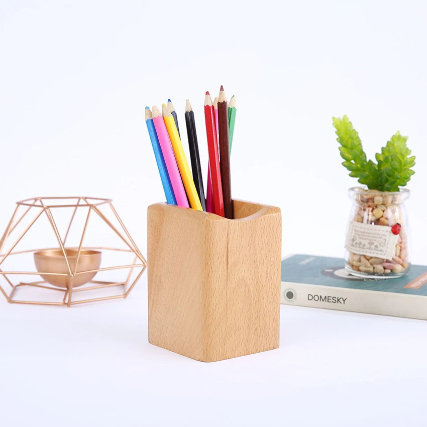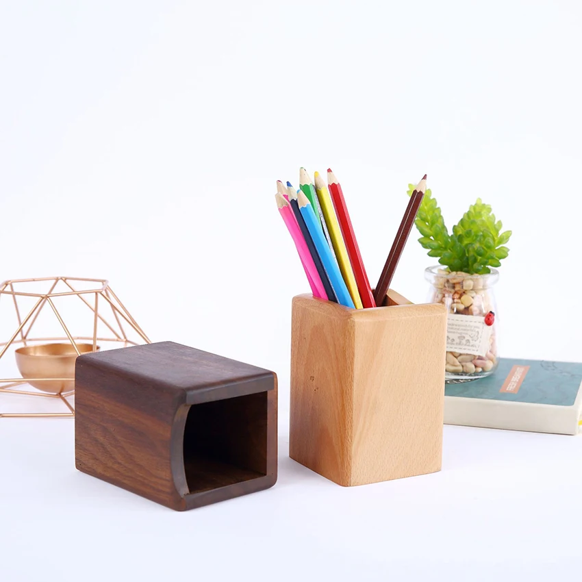 Деревянный квадратный держатель для ручек, подставка для карандашей из букачерного ореха, держатель для кистей для макияжа, настольный органайзер для канцелярских принадлежностей, 7x7x10 см