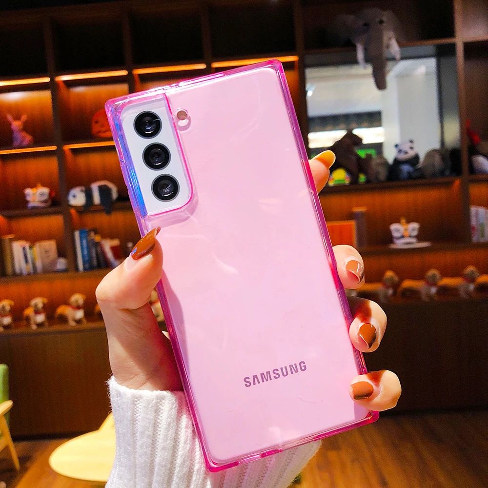 Квадратный неоновый цветной чехол для телефона Samsung Galaxy S21 S...