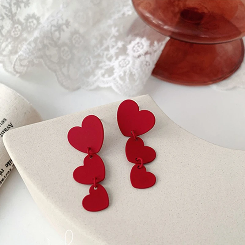 Элегантные милые серьги-подвески в форме сердца красного цвета для ...