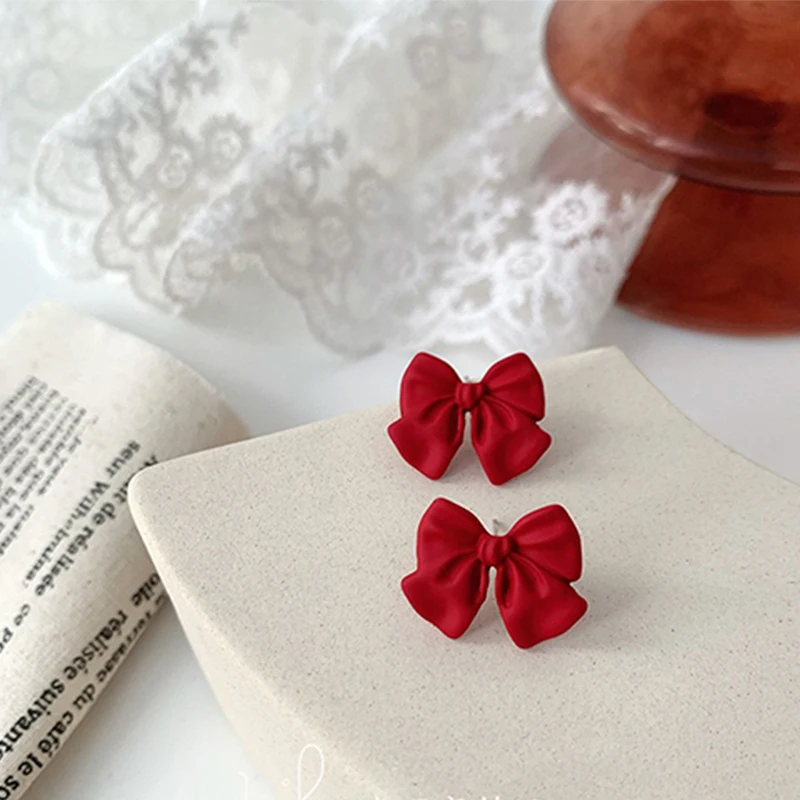 Романтичные серьги-подвески с бантом в форме красного сердца для девочек, очаровательные женские ювелирные изделия для свадебной вечеринки, модный подарок на день Святого Валентина