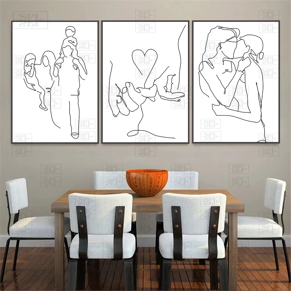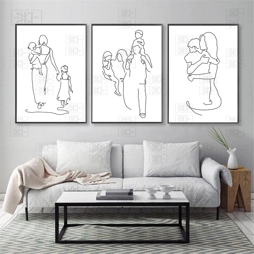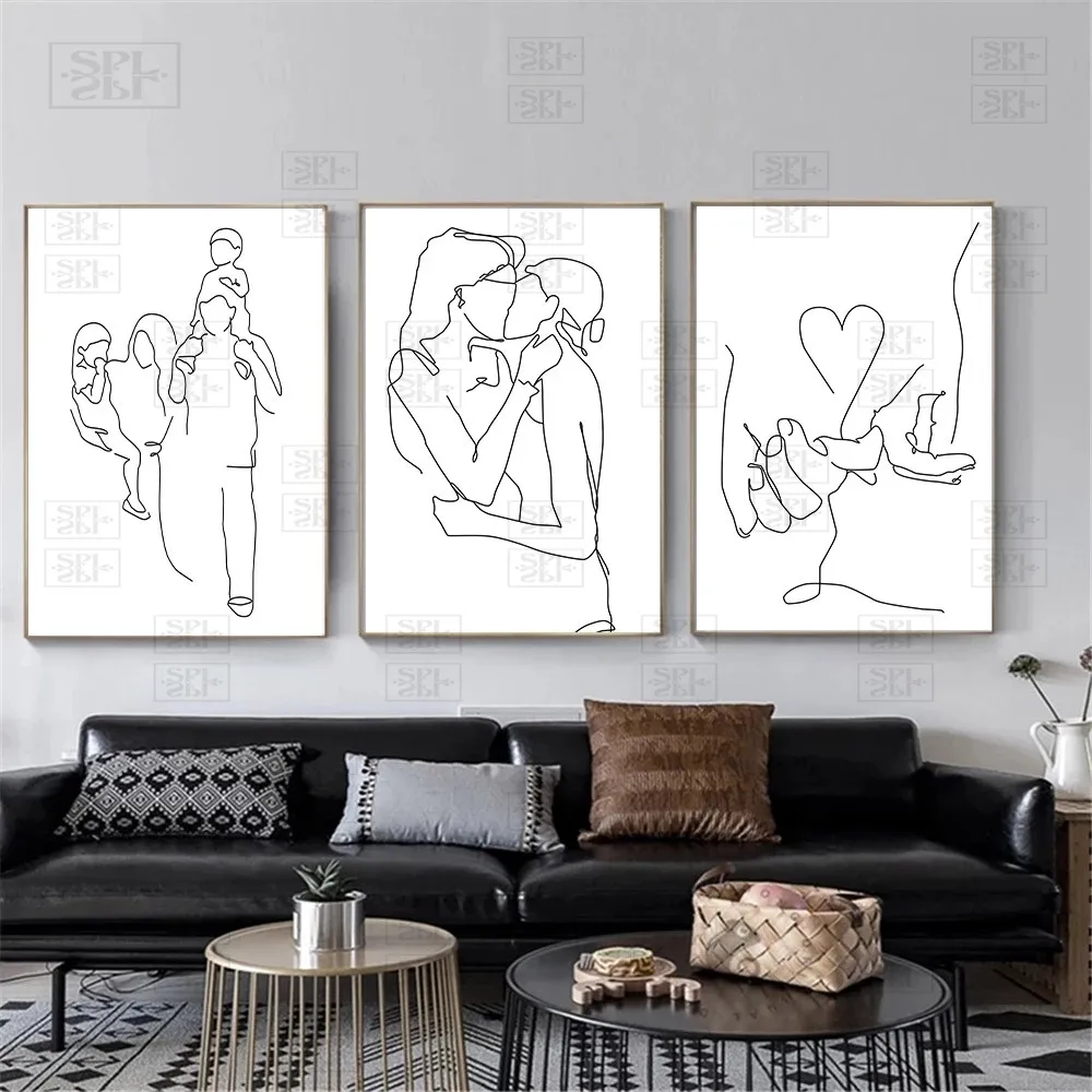 Семейная линия рисования стены искусства отец мать и дочери сын холст постер абстрактные фигуры печать Картины домашний декор