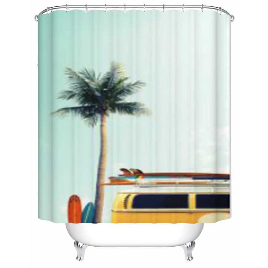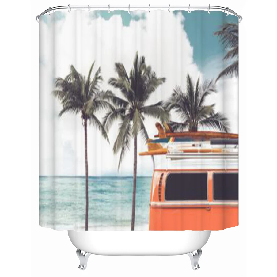 Винтажная летняя занавеска для душа в стиле ретро, автобуса, кемпер...