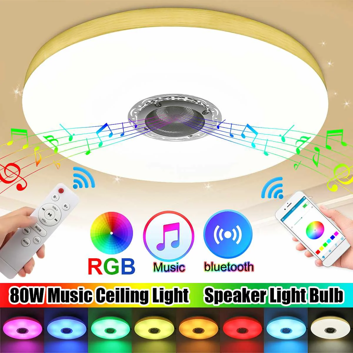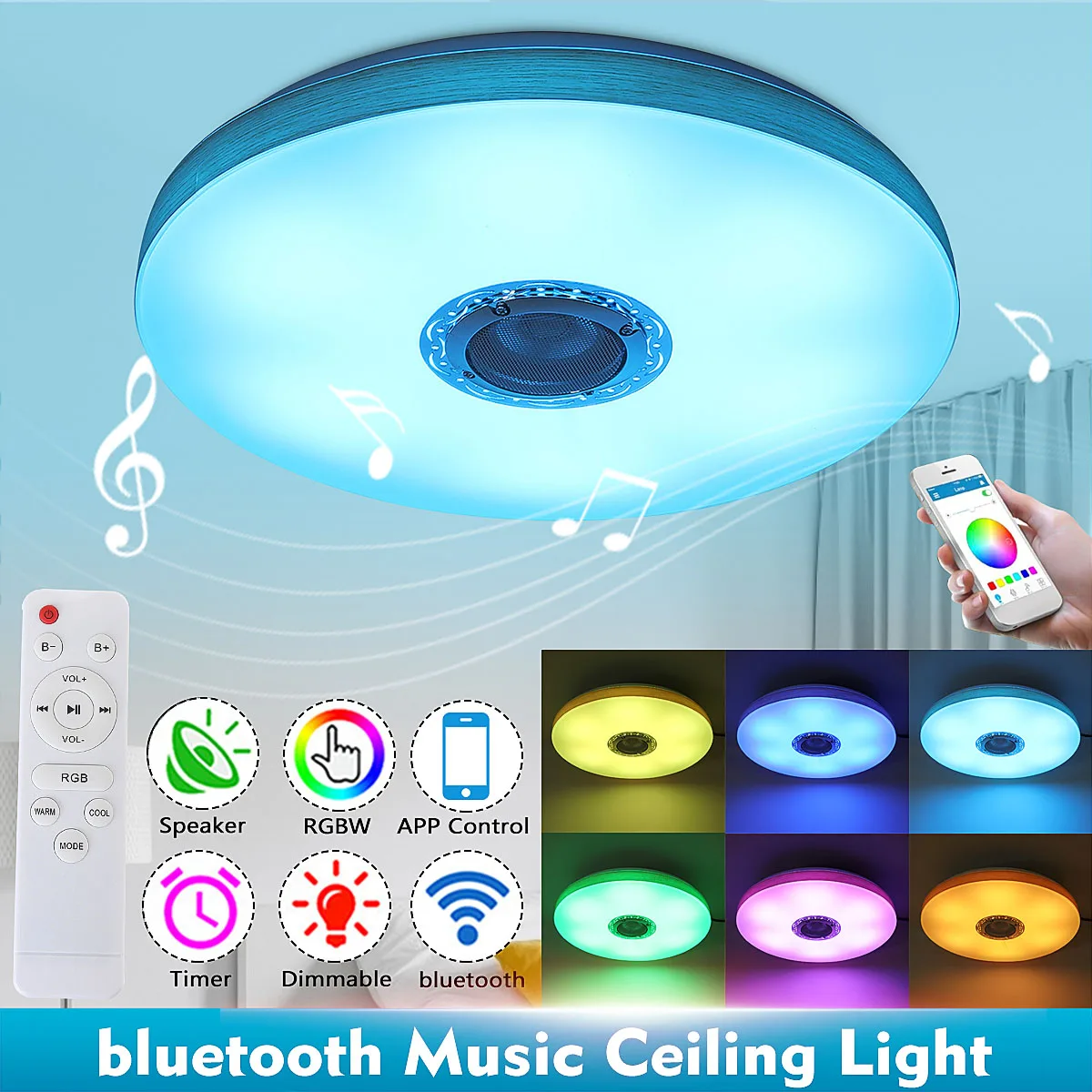 Потолочный светодиодный музыкальный светильник с Bluetooth динамико...
