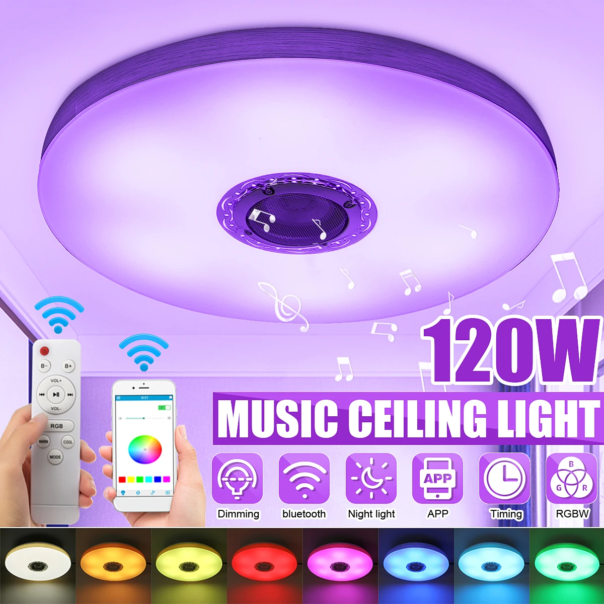 Новейшая модель; 120 Вт светодиодный Музыка потолочные светильники с приложениемДистанционное Управление затемнения цветная (RGB) Светодиодная лампа с bluetooth светодиодный потолочный светильник для дома Гостиная AC220AC85-265V