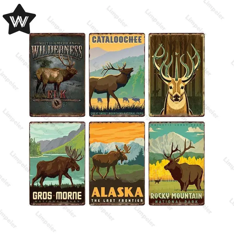Металлический постер в виде оленя, Оловянная табличка с оленем, винтажные настенные наклейки в стиле ретро, металлический знак, Оловянная табличка для мужчин, Декор Пещера