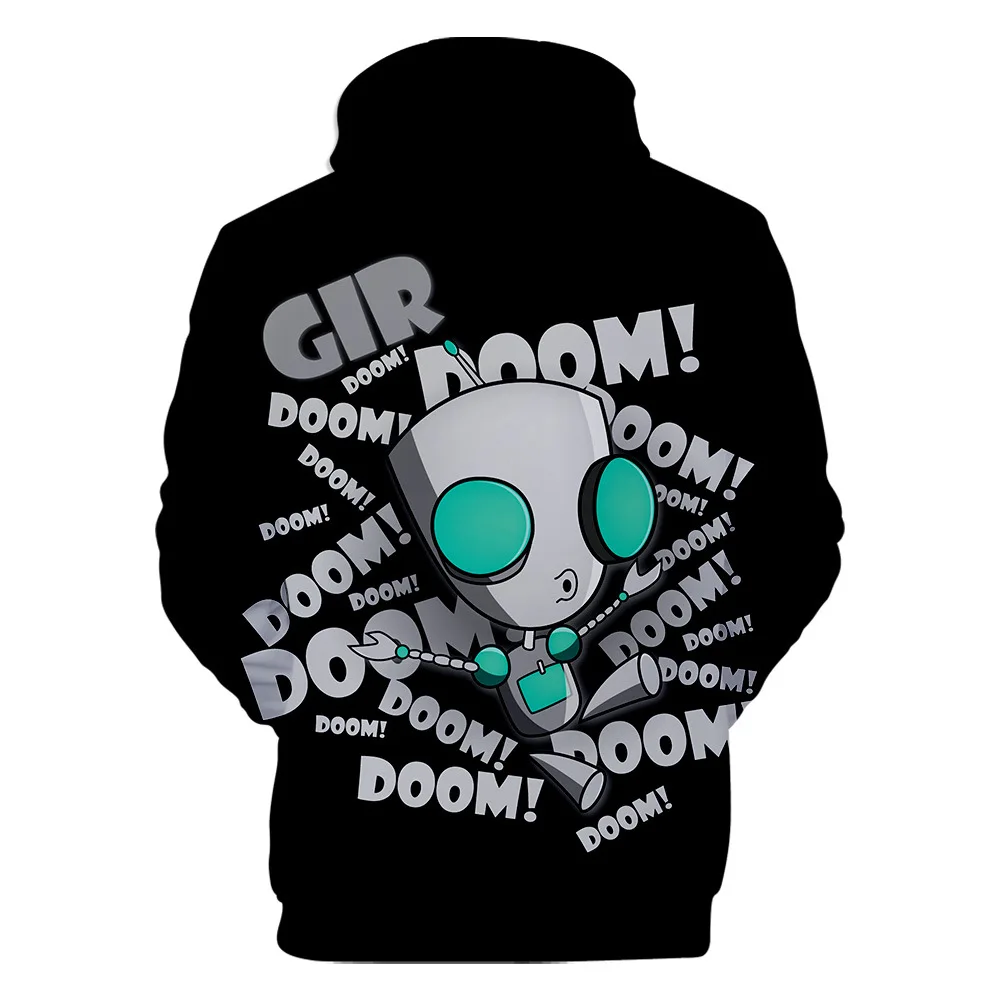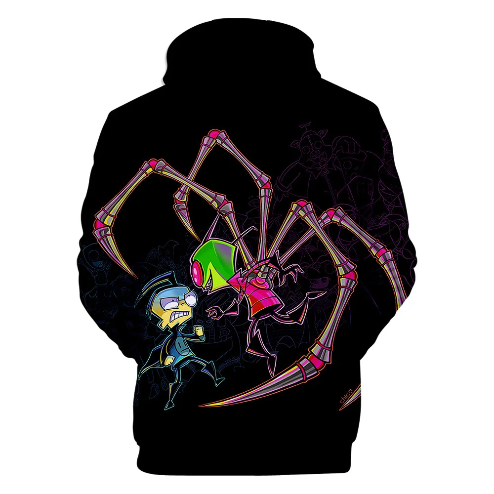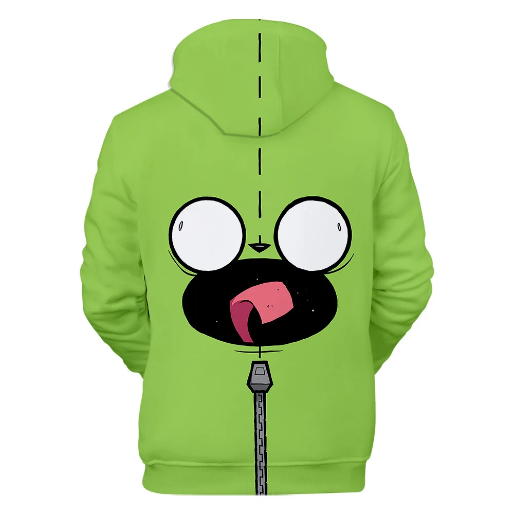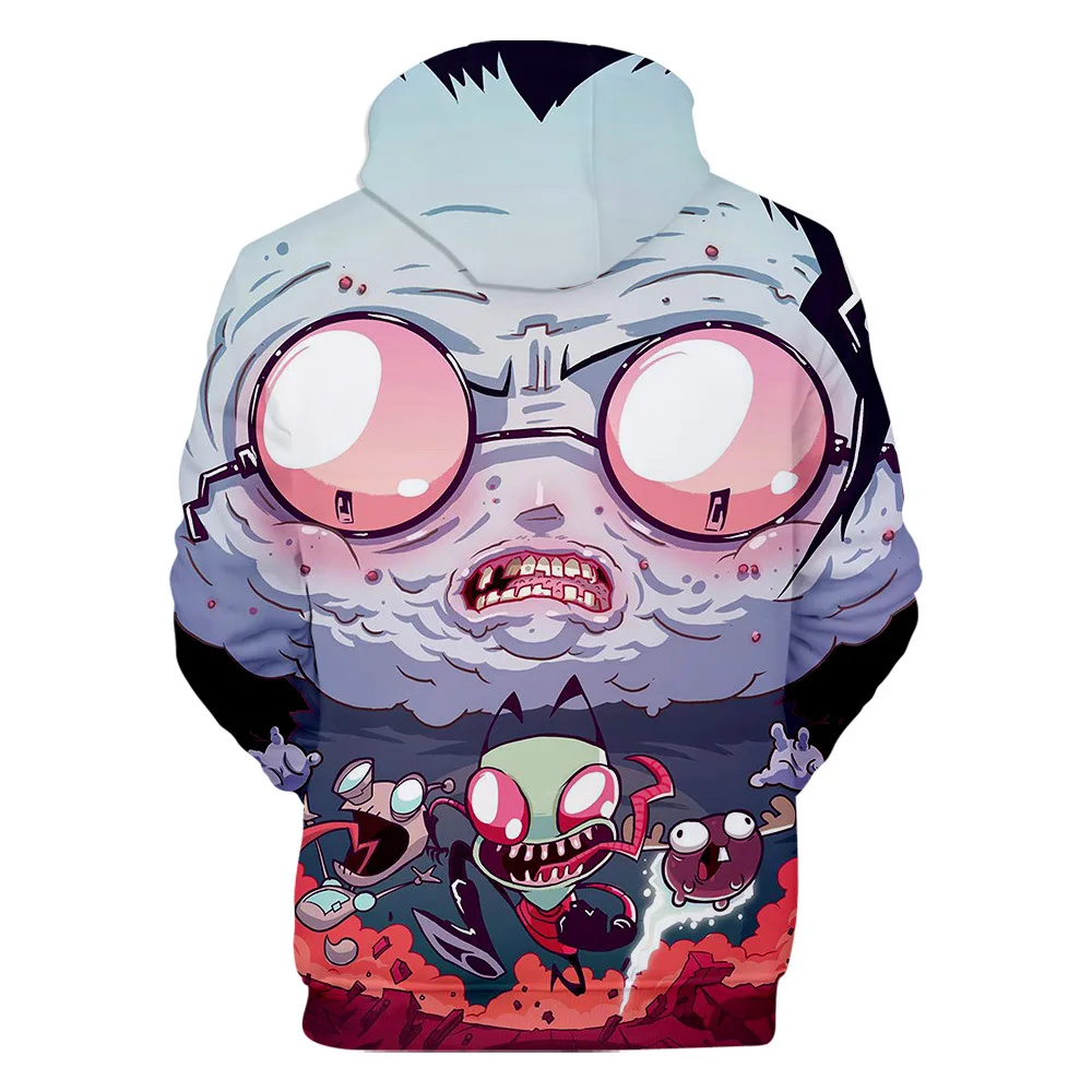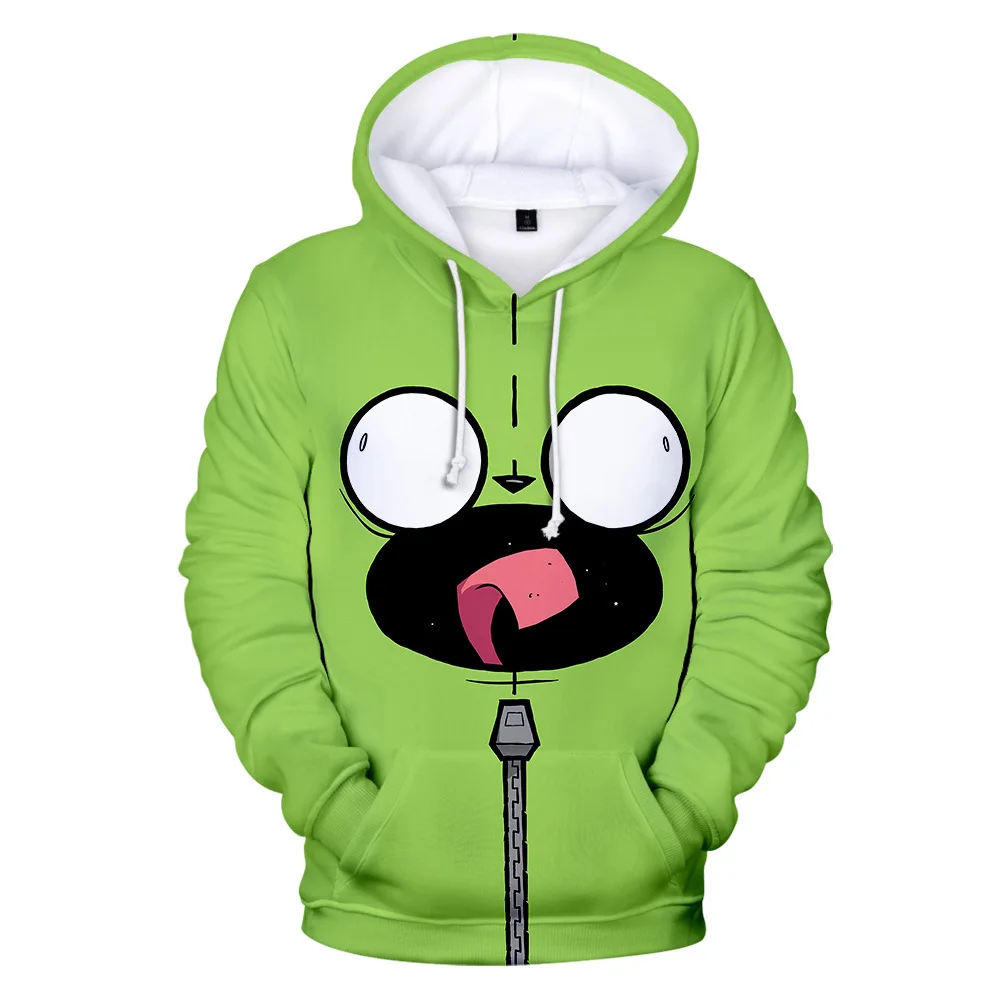 Толстовка с капюшоном в стиле аниме Invader Zim, мужские и женские модные толстовки большого размера, милый спортивный костюм для мальчиков, пуловеры с 3D-принтом, спортивные топы
