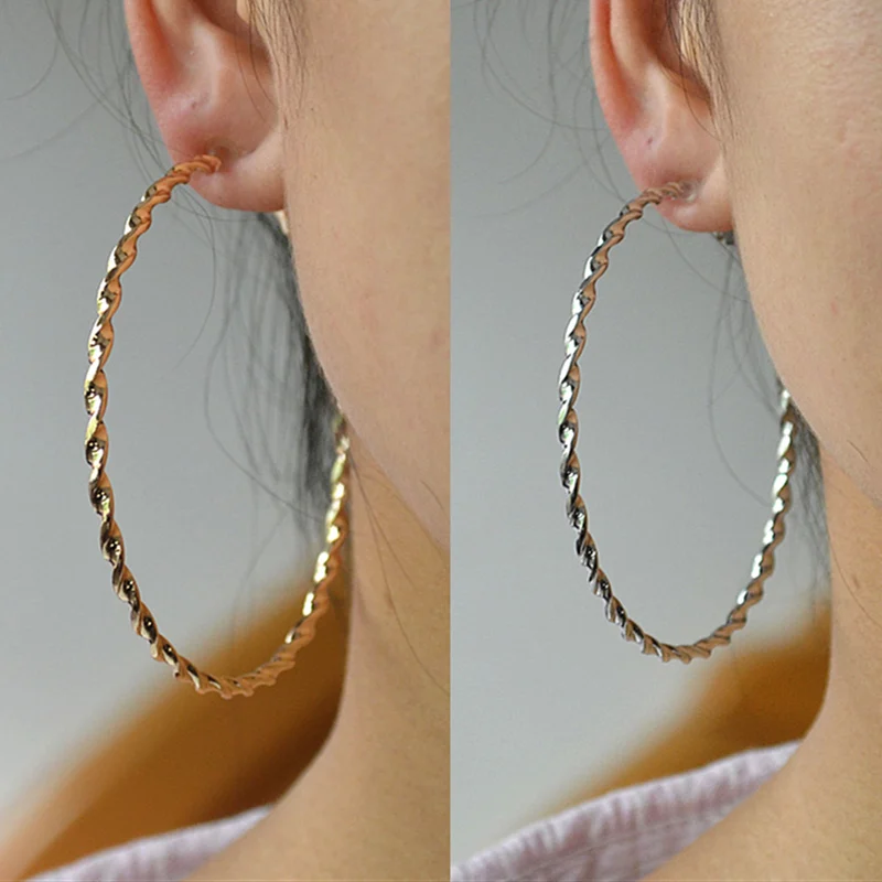 50 мм 60 70 мм Простая спираль большие серьги кольца для женщин заявление Мода большой круг круглые серьги вечерние ювелирные изделия подарок для девочки
