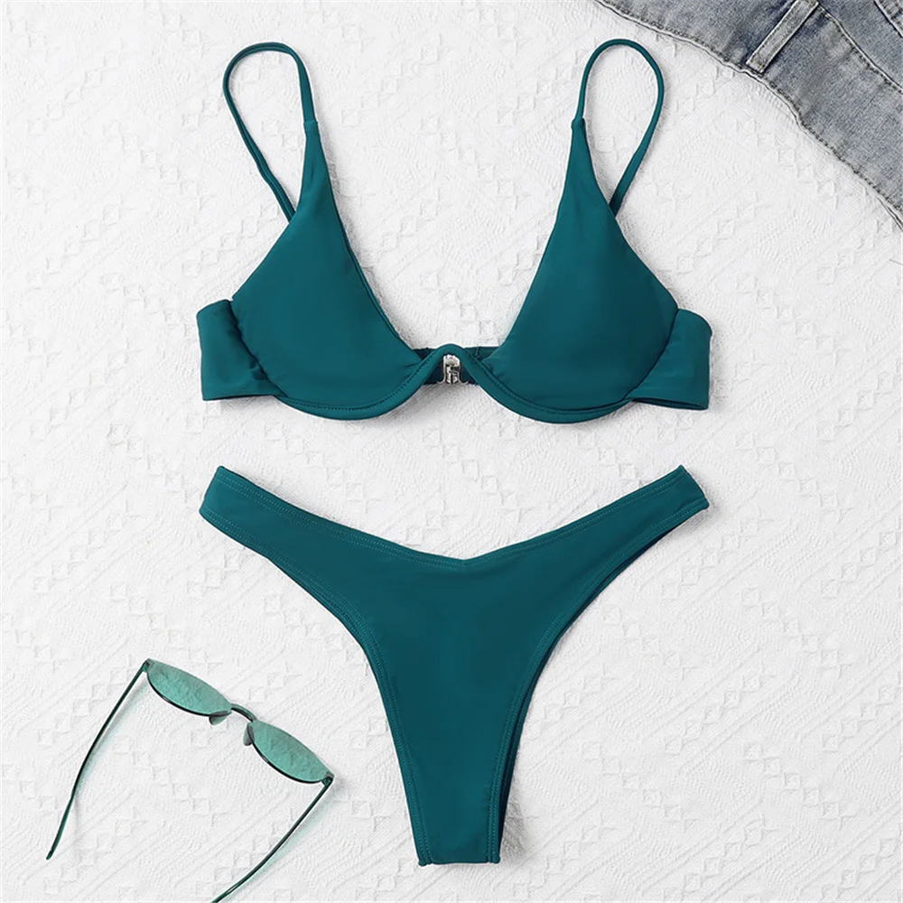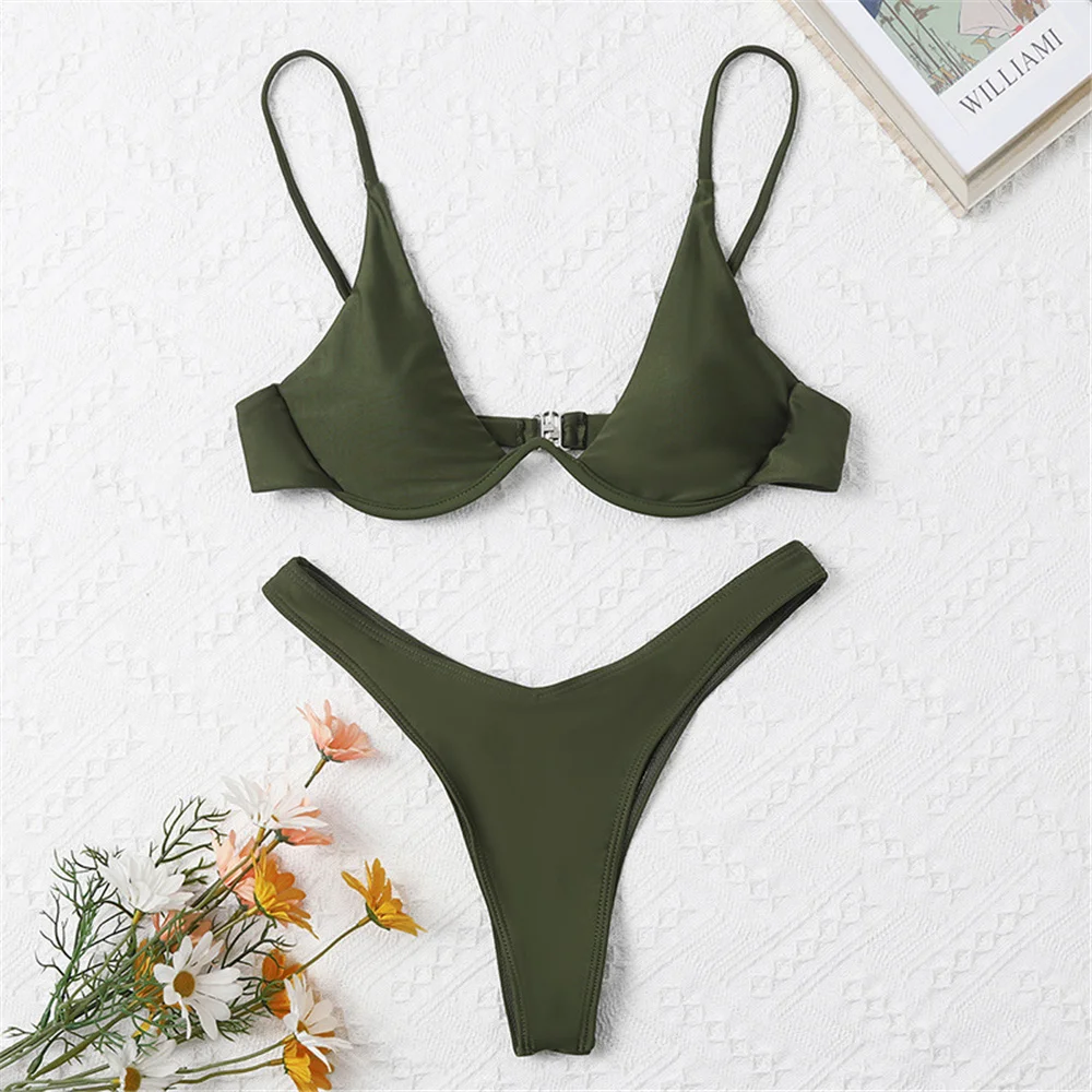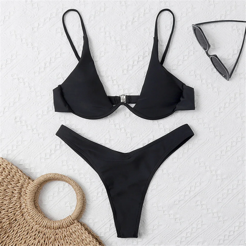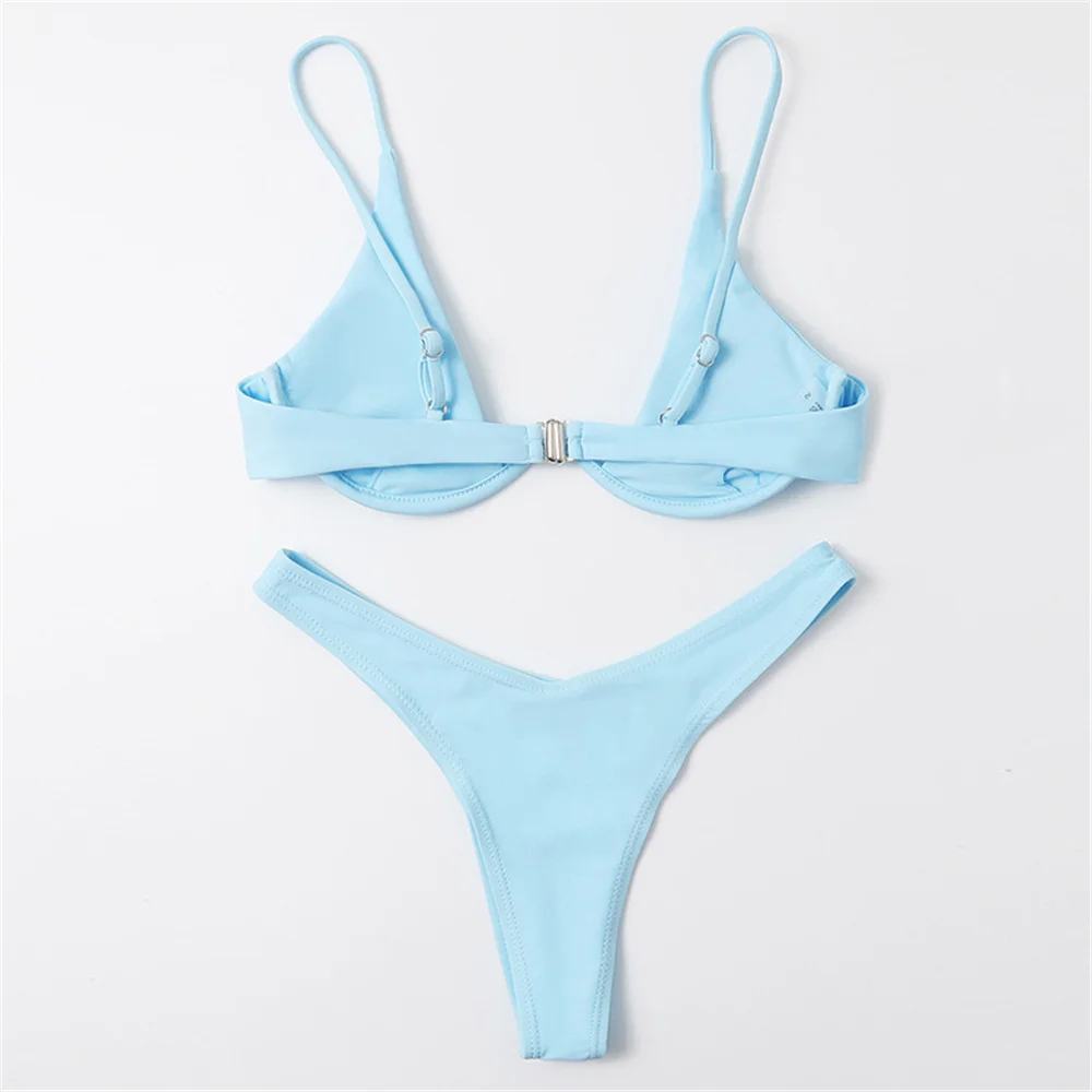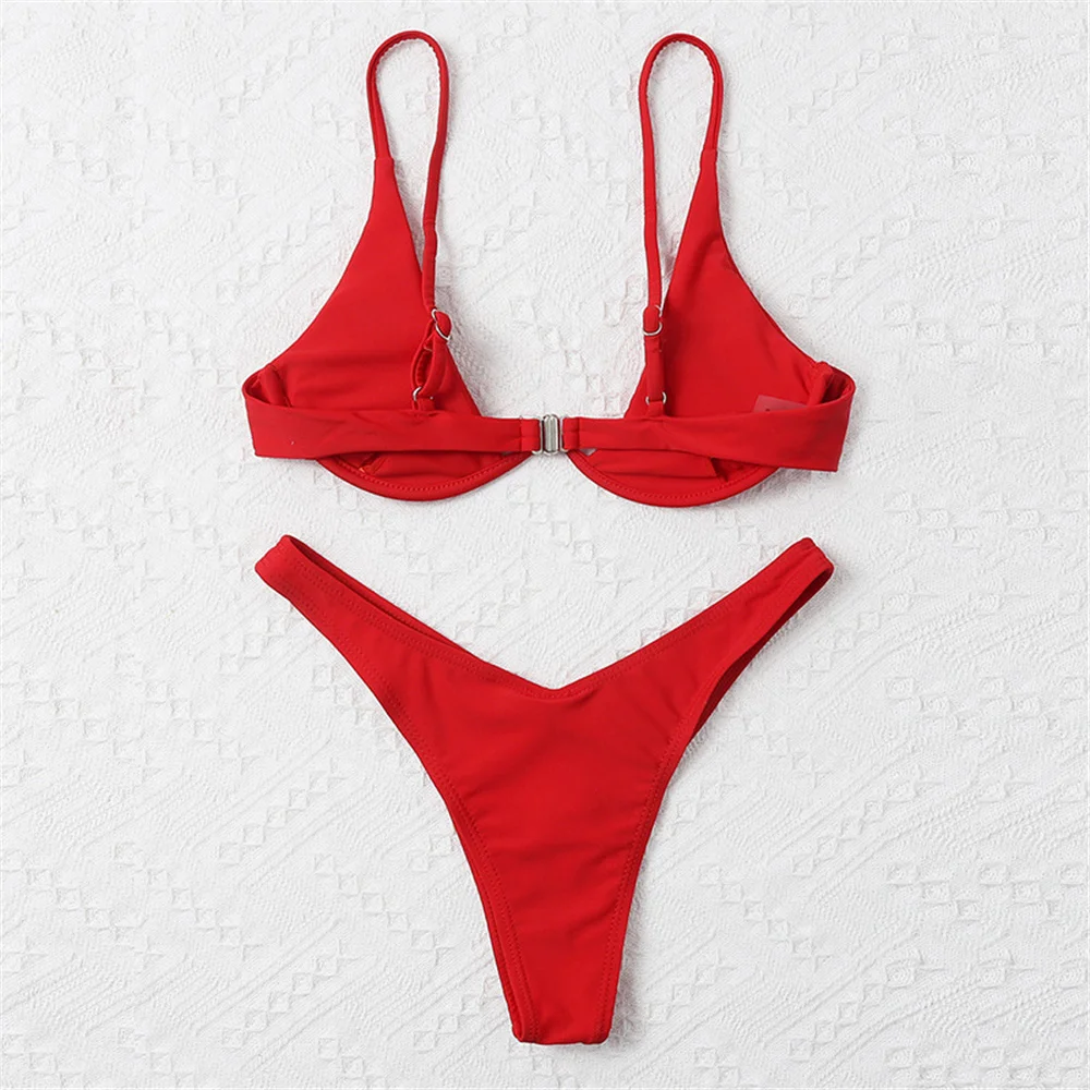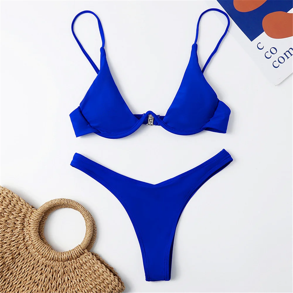V-бар женский купальник бикини на косточках Для женщин купальный костюм из двух частей, v-образной формы провода бикини-купальник ванный комплект для плавания