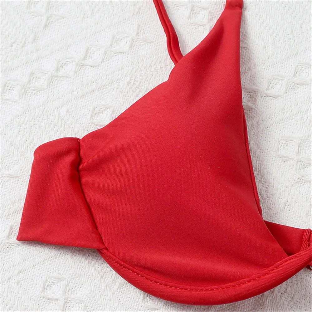 Сексуальное бикини на косточках 2021, Женский однотонный красный ку...