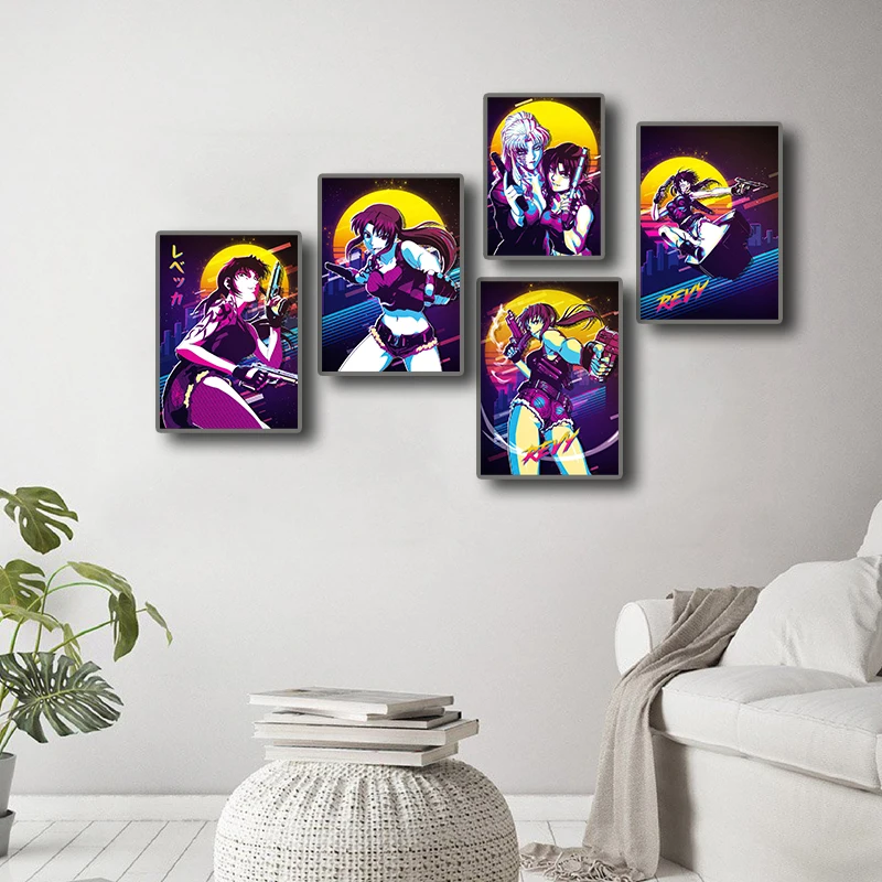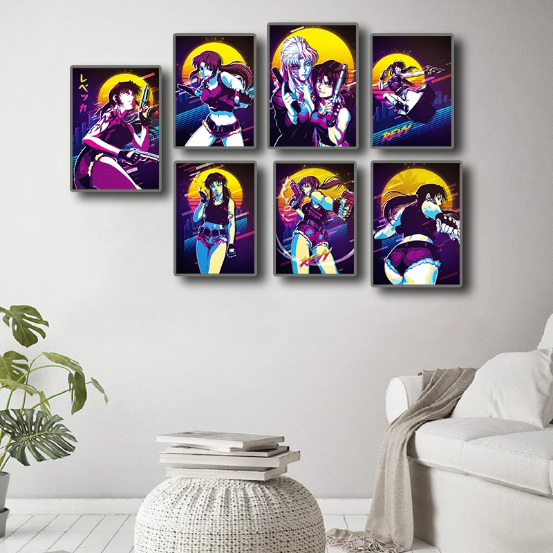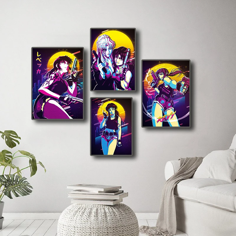 Постеры классические аниме Черная Лагуна, качественная Картина на холсте в стиле ретро, домашний декор для стен для детской, гостиной, бара, кафе