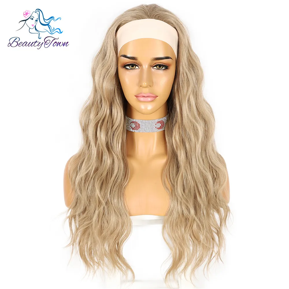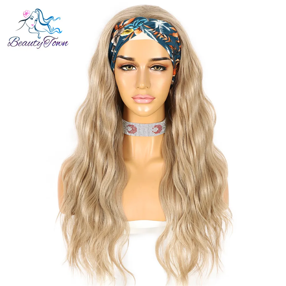 Длинная волнистая повязка на голову, парик для чернокожих женщин, термостойкий, волнистый, синтетический , без клея, блонд, новая мода