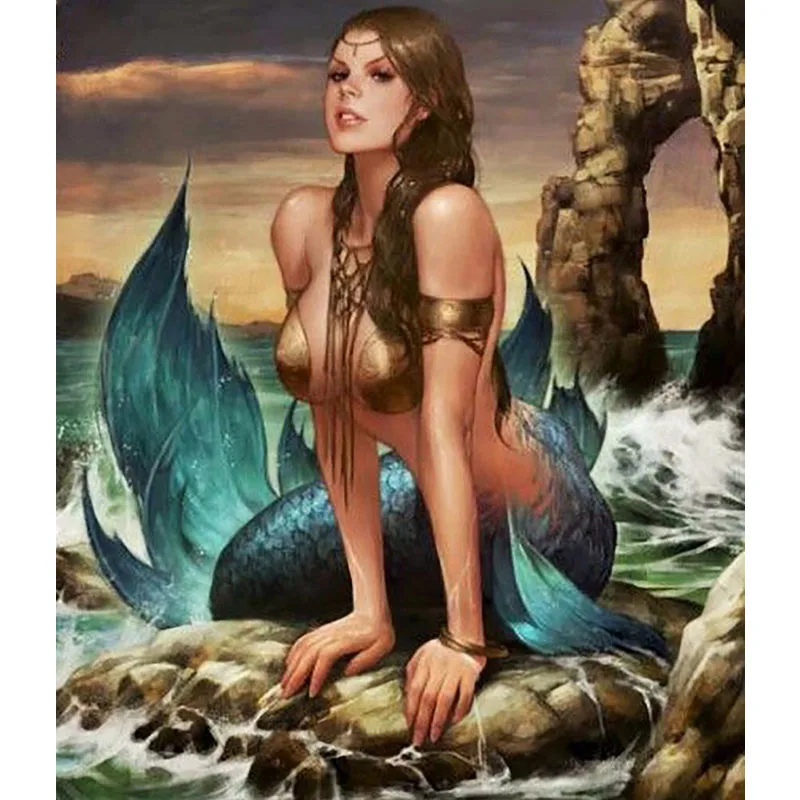 Набор для вышивки крестиком русалка, алмазная живопись круглой форм...