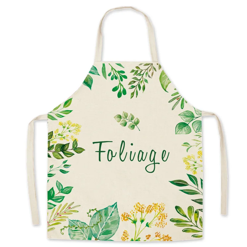 Картонная коробка Кухонный Фартук с узором, хлопковые льняные фартуки без рукавов, зеленые принадлежности для домашнего использования, для уборки, 65x75 см