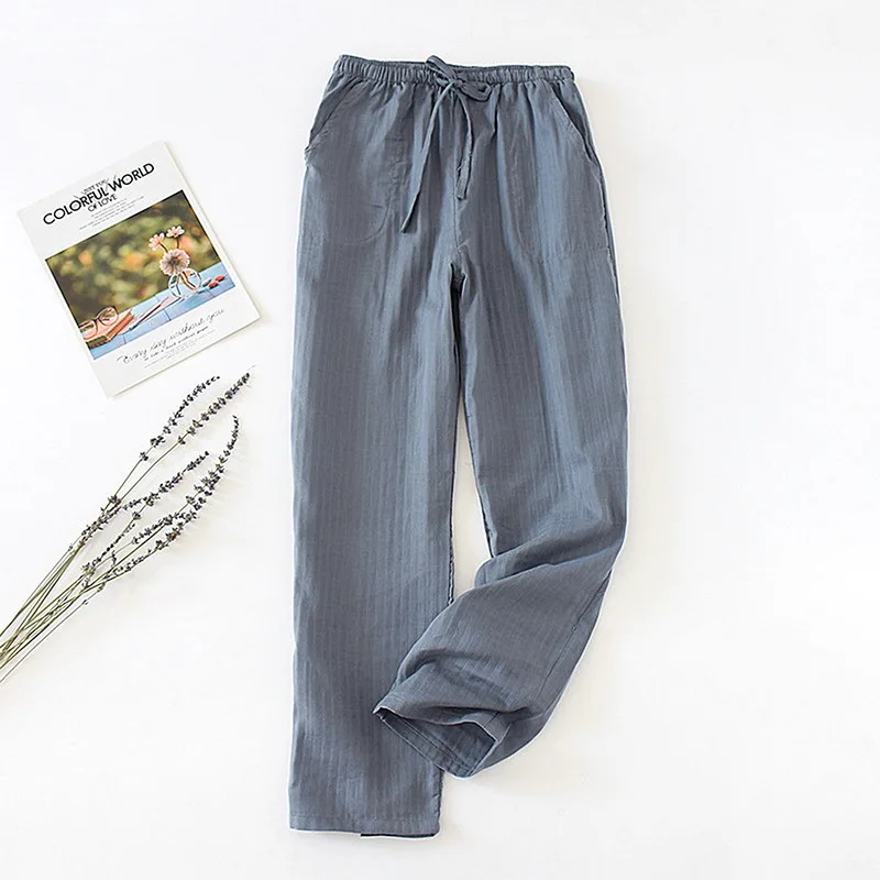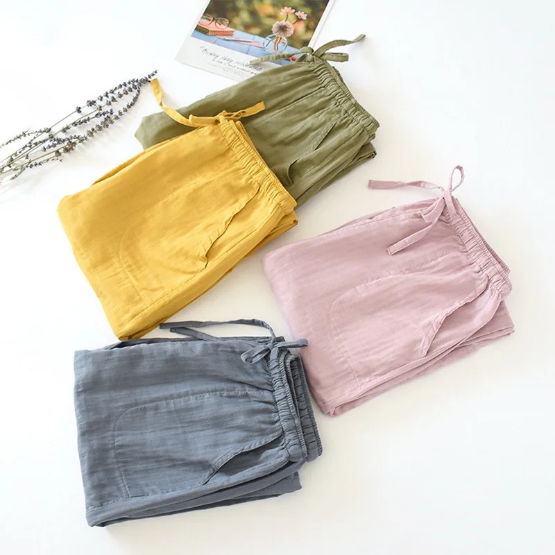 Новинка, домашние штаны из чистого хлопка с двойной марлей, однотон...