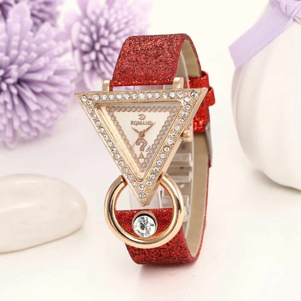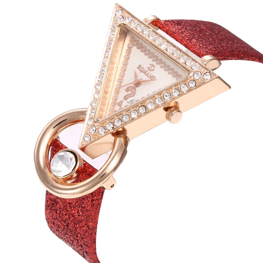 Перевернутые треугольные женские часы со стразами из матовой кожи, повседневные Простые студенческие универсальные кварцевые часы
