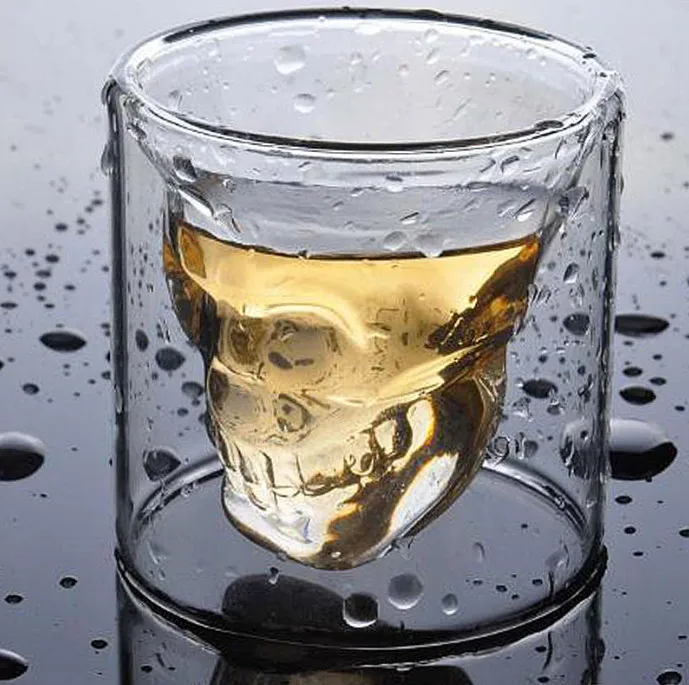Прозрачная стеклянная чашка с черепом, двухсторонний бокал 25 мл для виски, вина, водки, бара, клуба, пива, вина