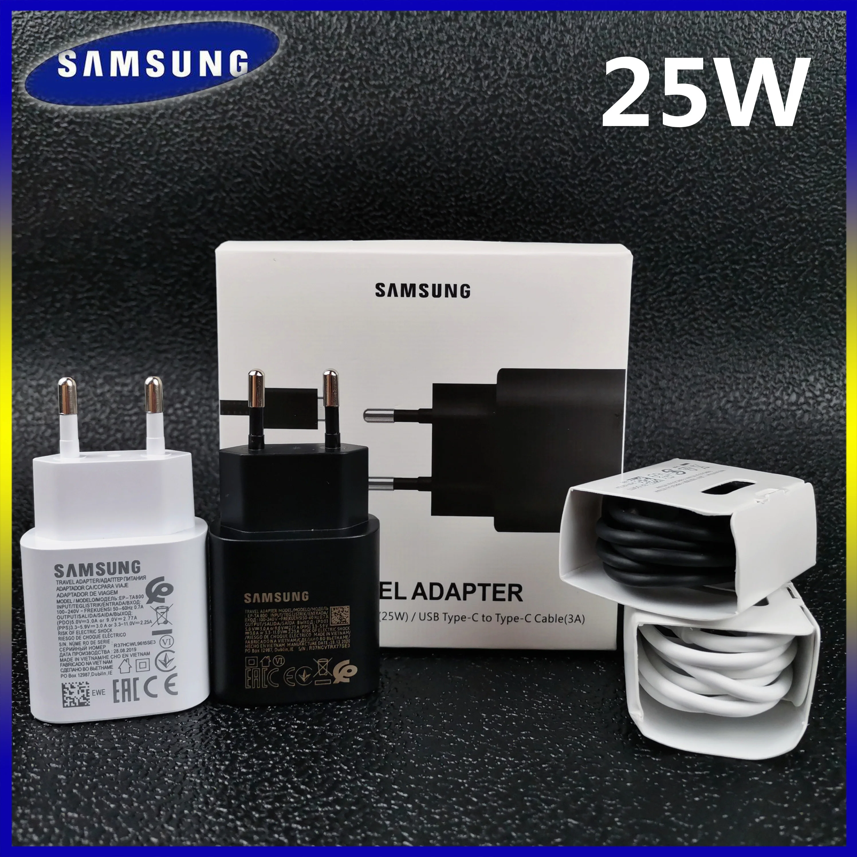 Сверхбыстрое зарядное устройство Samsung S21, 25 Вт, оригинальный адаптер европейского стандарта, 3 А, кабель Type-C, зарядное устройство для Galaxy Note 20, S20, A90, A80, S10