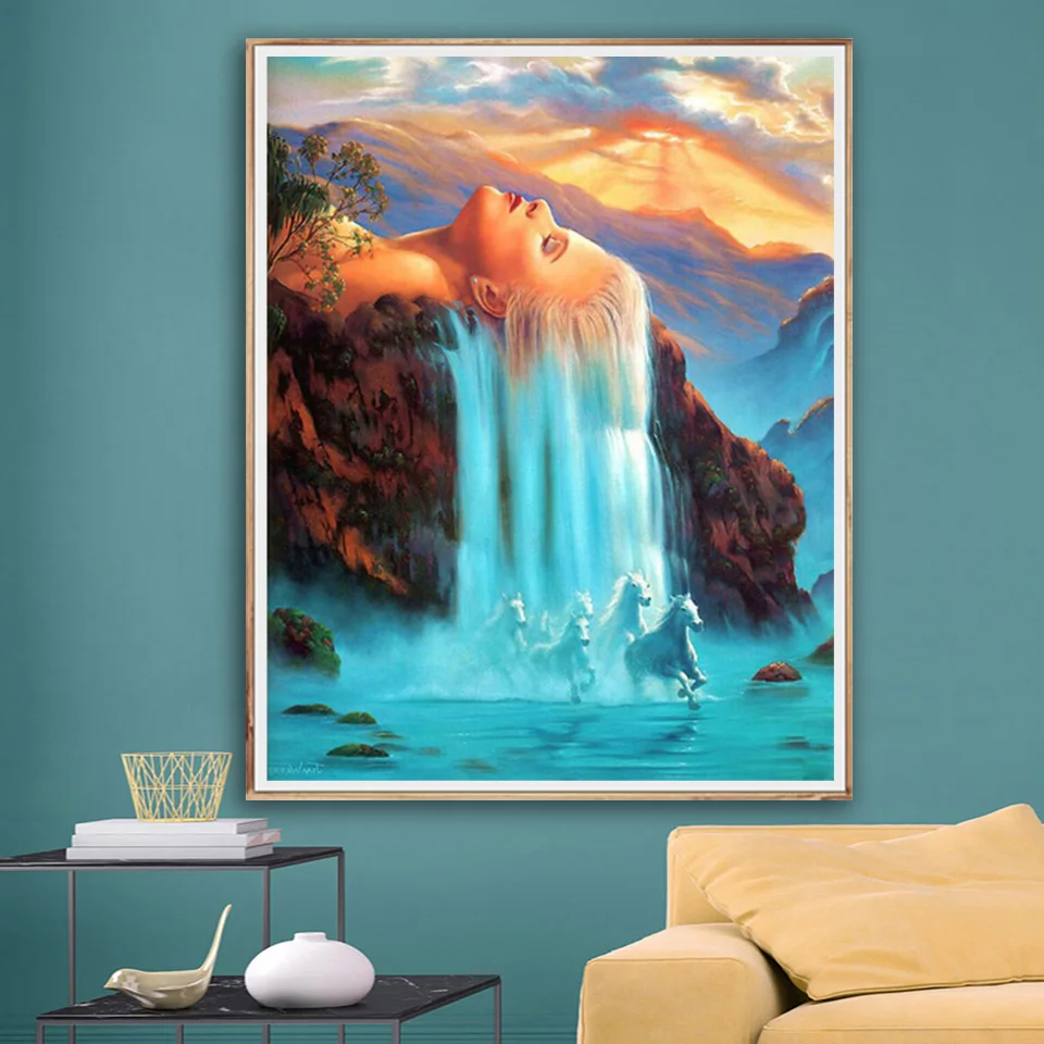 5D сделай сам, алмазная живопись, пейзаж, Женский Набор для вышивки водопадом, Алмазная мозаика, искусство ручной работы, картина, украшение для дома, подарок ручной работы