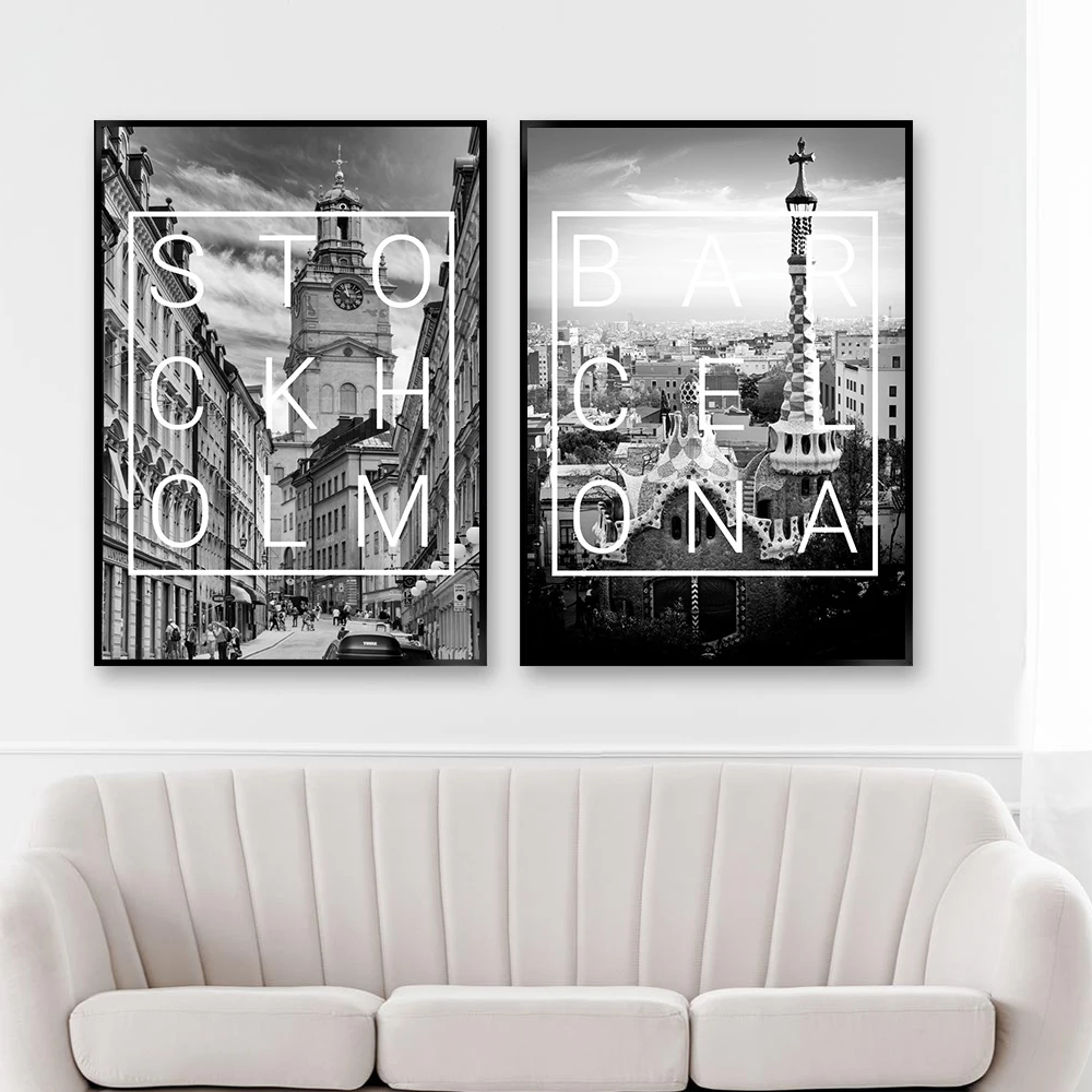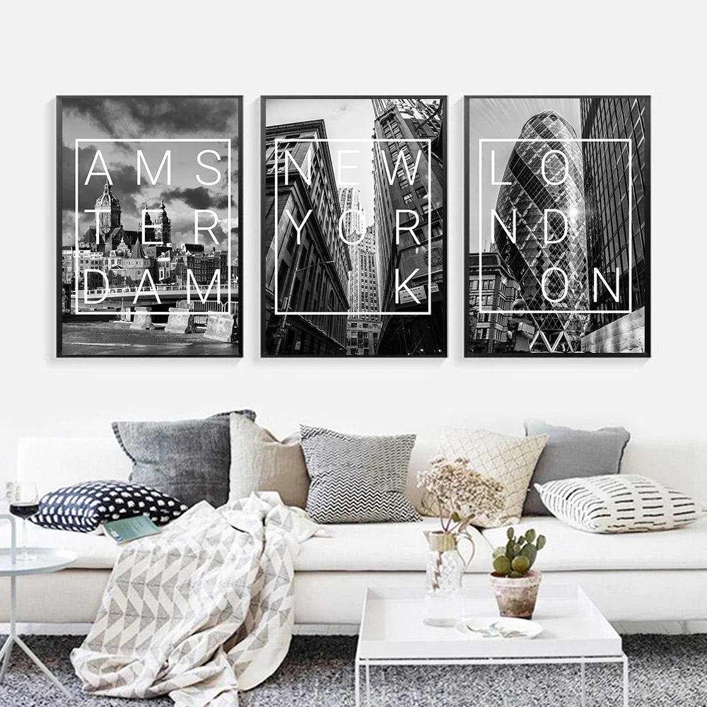 Винтажная Настенная картина на холсте, Нью-Йорк, Лондонский пейзаж, черно-белые плакаты и принты для гостиной, декоративные фрески