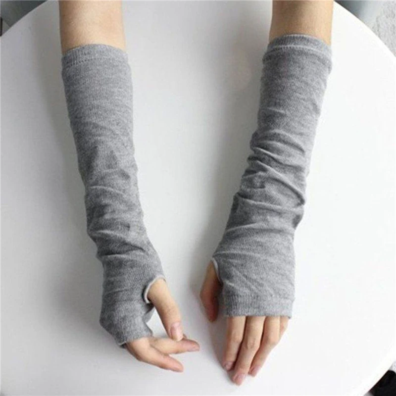 Длинные перчатки без пальцев, 1 пара, вязаные перчатки с отверстиям...