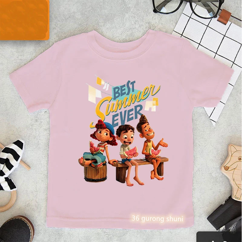 Kawaii футболки для девочек, милая Одежда для девочек с мультяшным принтом Луки, летняя Эстетическая рубашка для девочек в стиле Харадзюку, розовые Топы с коротким рукавом