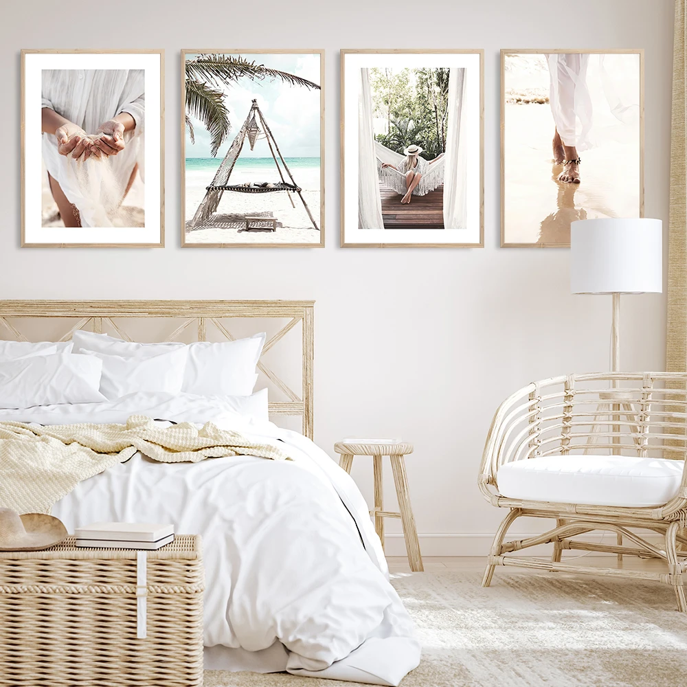 Скандинавский тропический побережье, пейзаж, холст, плакат и печать...
