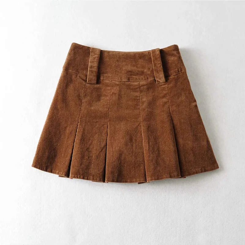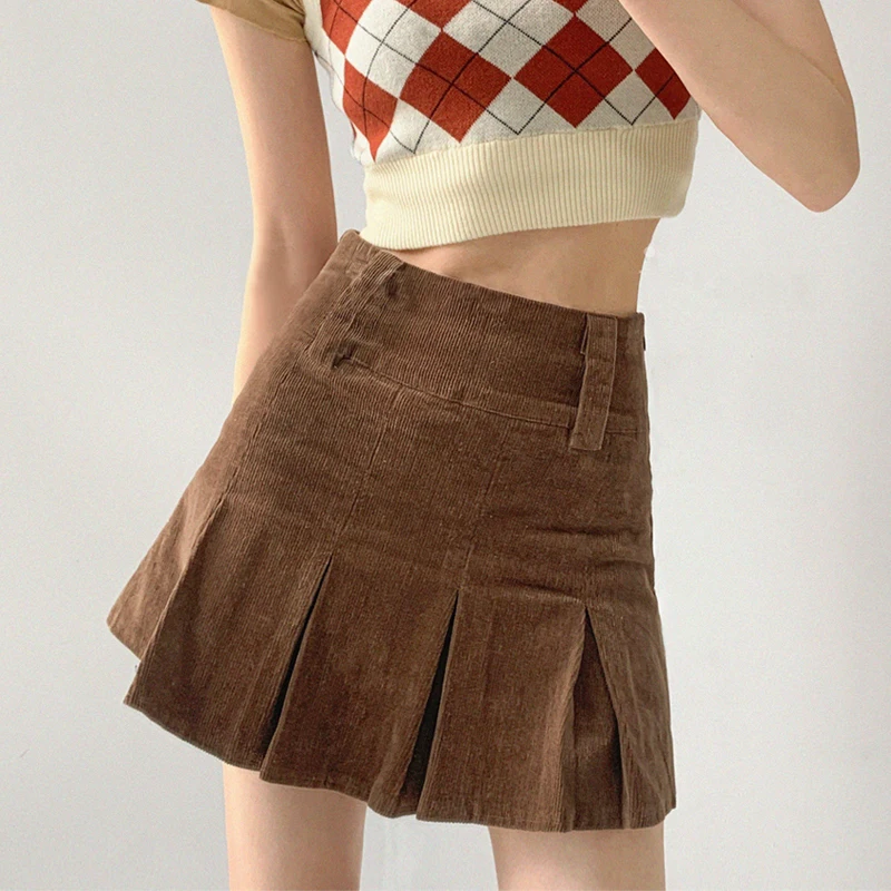 Женские Коричневые Вельветовые плиссированные юбки 90s винтажные Y2...