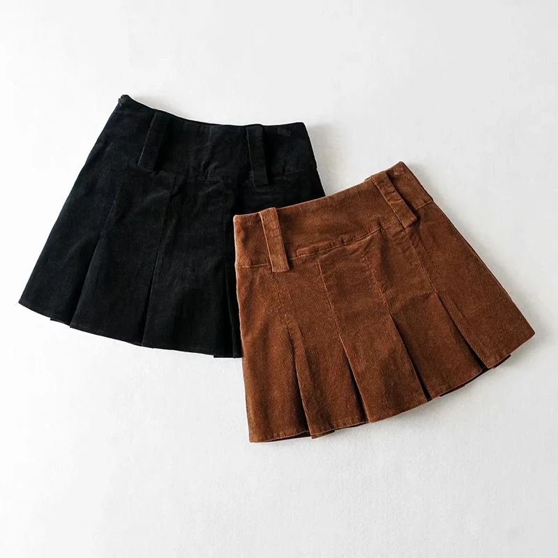 Женская Вельветовая плиссированная мини-юбка с поясом и петлями мини-юбка